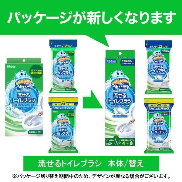 【まとめ買い】 スクラビングバブル 流せるトイレブラシ フローラルソープの香り 本体+付け替え用 (4個+24個) トイレ洗剤 黒ズミ トイレ掃除 使い捨て 洗剤