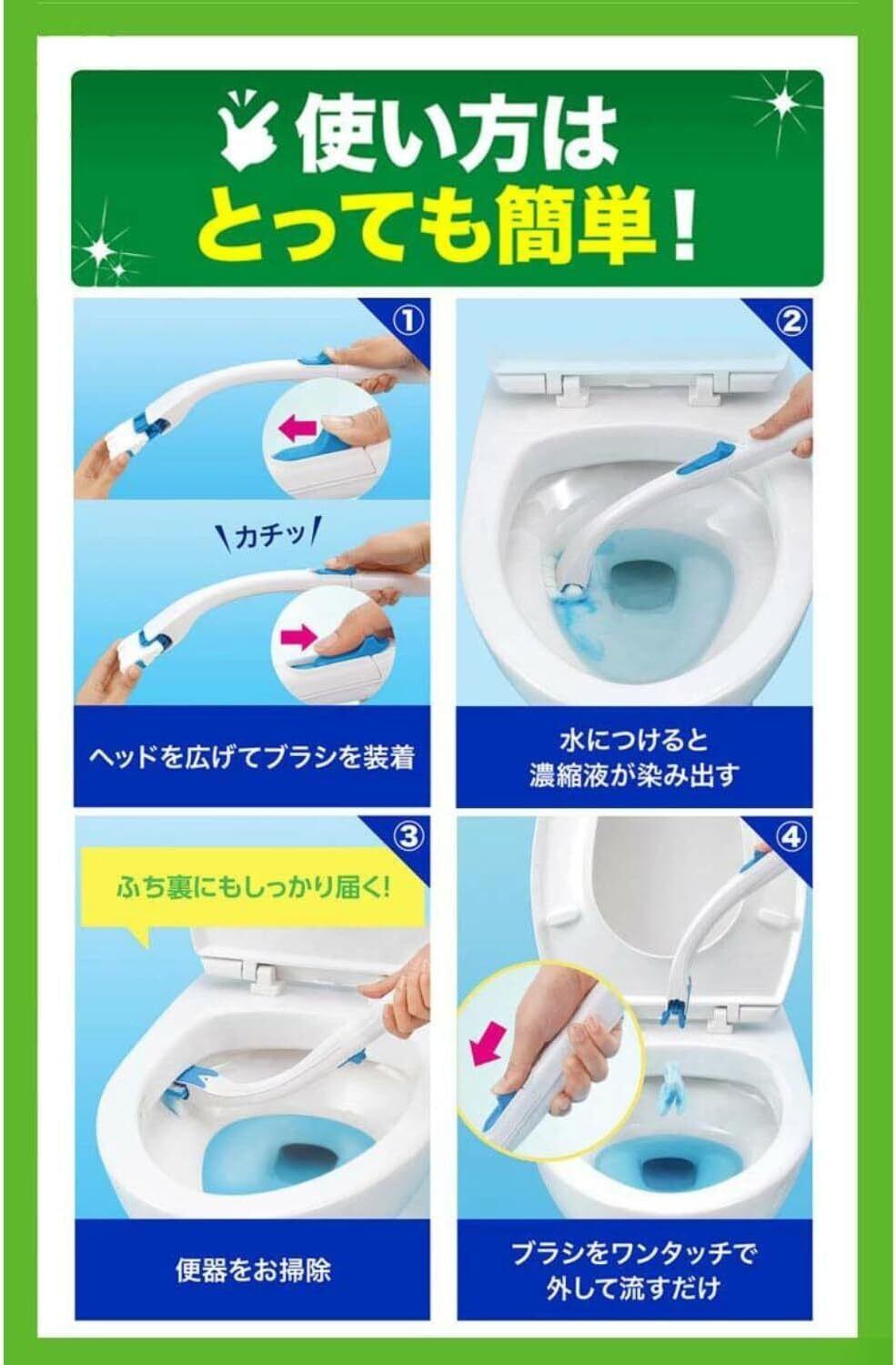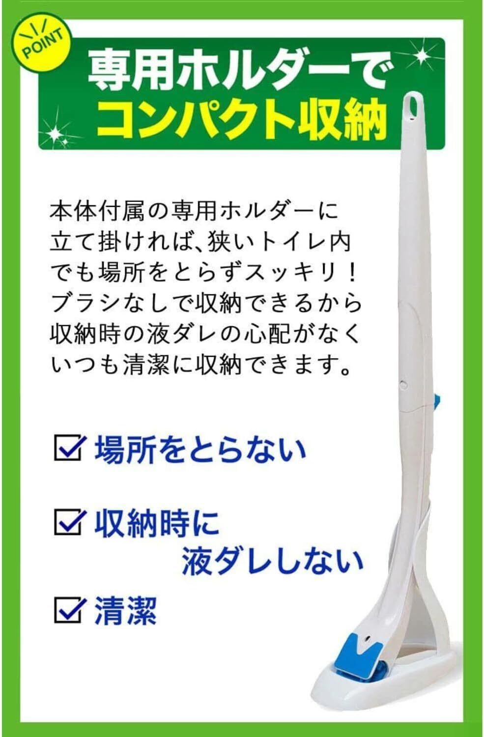 ・便器内の掃除はこれ一本、濃縮洗剤付きトイレブラシ ・黒ずみなどの便器の汚れをしっかり落とせる掃除洗剤 ・ふち裏にもしっかり届く形状 ・汚れたブラシがそのまま流せて清潔