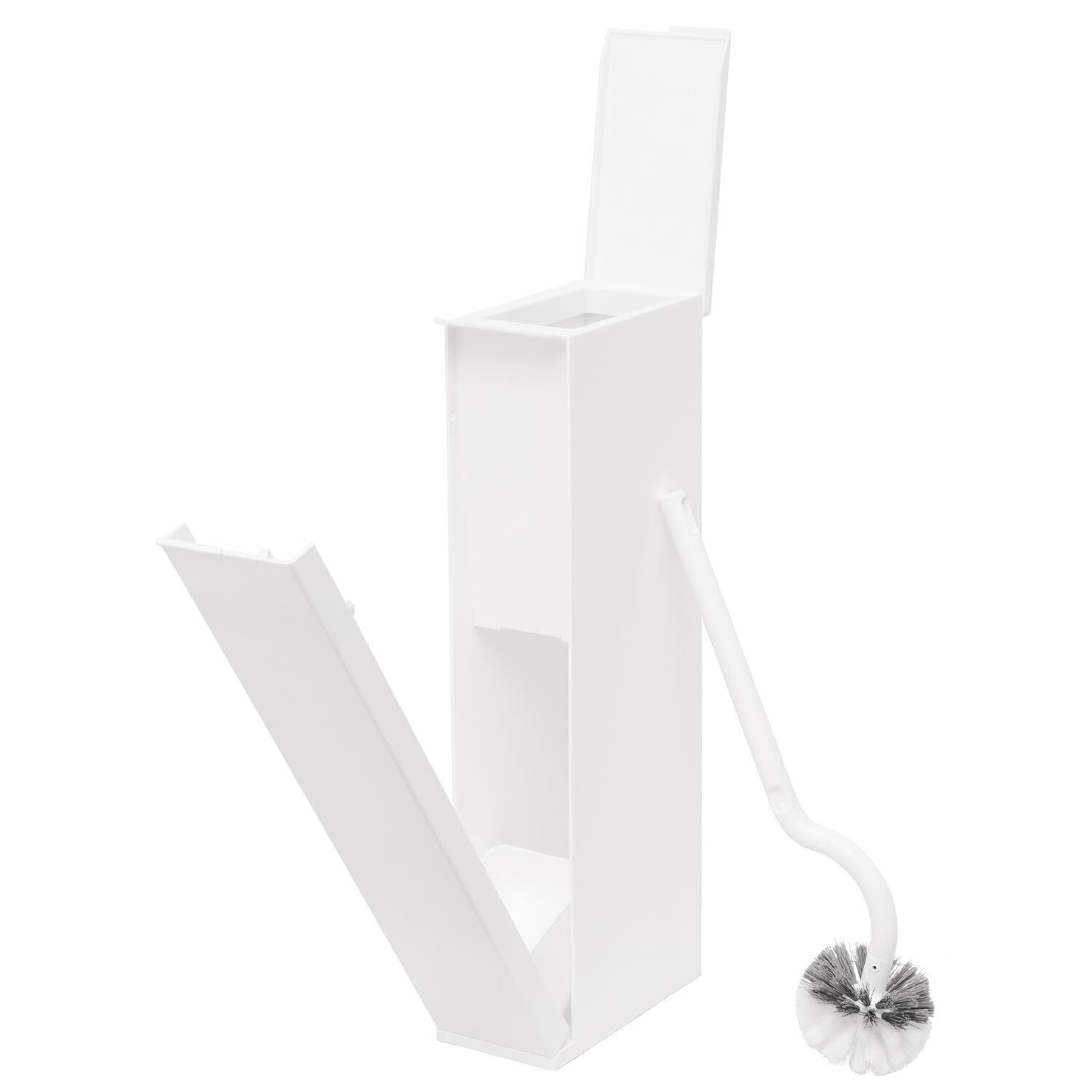 ●便器のフチに置いて衛生的に水切りができるケース付きのトイレブラシです。