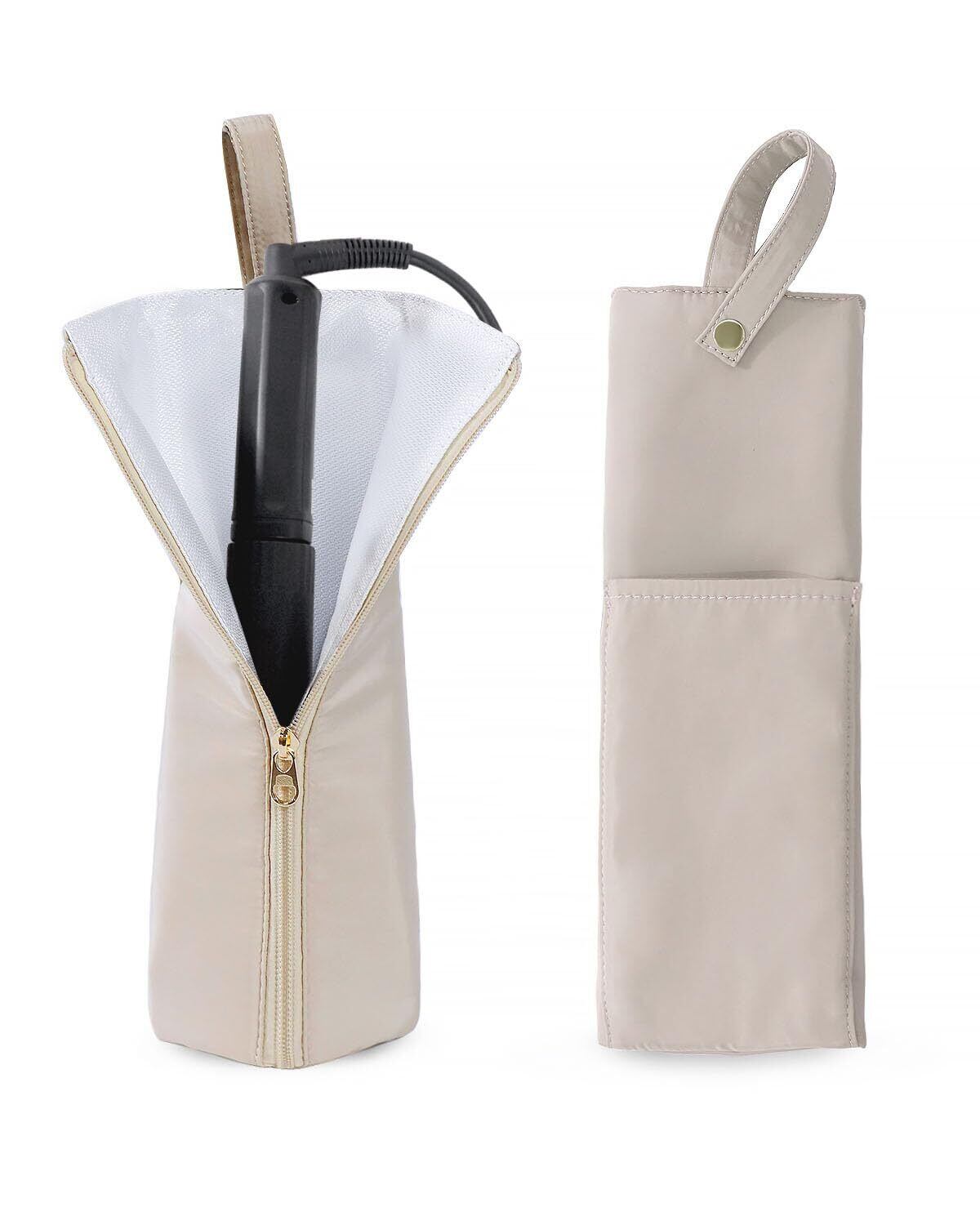 【旅行にも持ち運びポーチとして便利】厚みのある生地がヘアアイロンをしっかり保護し、旅行にも最適なポーチです。耐熱素材を使用しているので、アイロンをしまったままでも安心です。チェックアウト前でも簡単に収納し、スーツケースに入れても安心です。