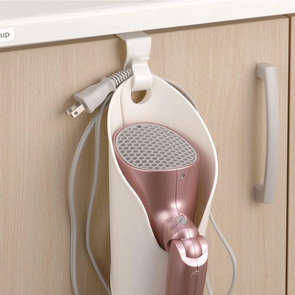 洗面まわりのちょっとしたスペースにドライヤーを掛けて収納できるので便利です。コードを掛けることもできるのでスッキリ収納できます。 耐荷重:約800g 取り付け可能なポール:約26mm以下 取り付け可能な扉:扉の厚さが約13〜24mmで扉上のすき間が約4mm以上のもの。