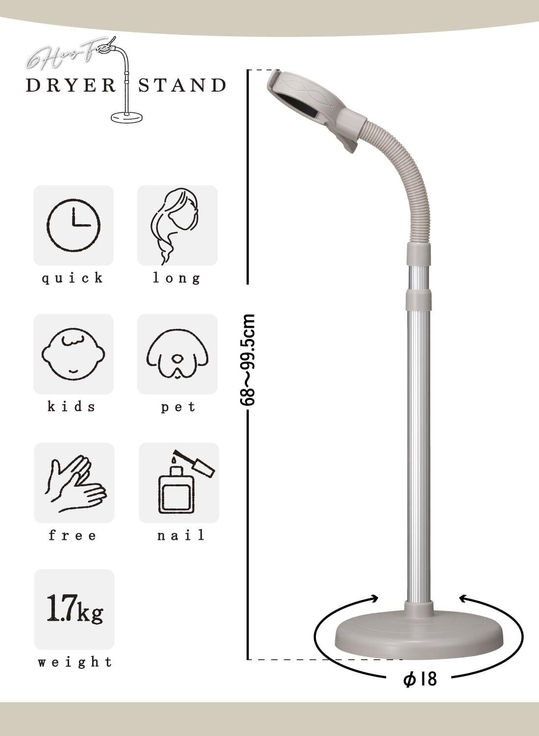 ※本商品に取り付けられるドライヤーの大きさは直径約4.5~7cmです。それ以外の大きさのドライヤーは使用しないでください。