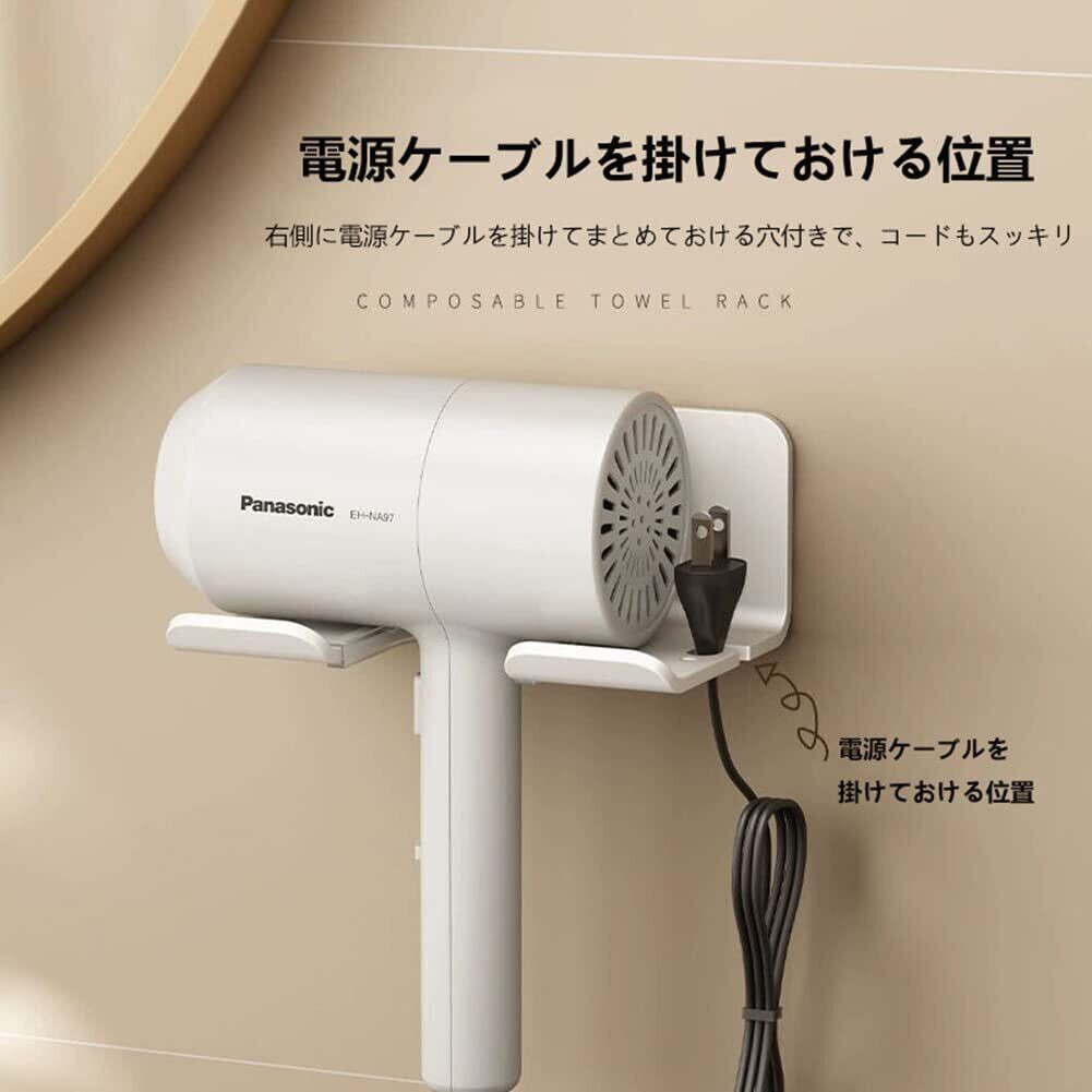 コンセント収納機能付き:このドライヤーホルダーには、コンセント収納機能が付いており、電線プラグを収納することができます。美しい見た目を維持しながら、スッキリと収納できます。