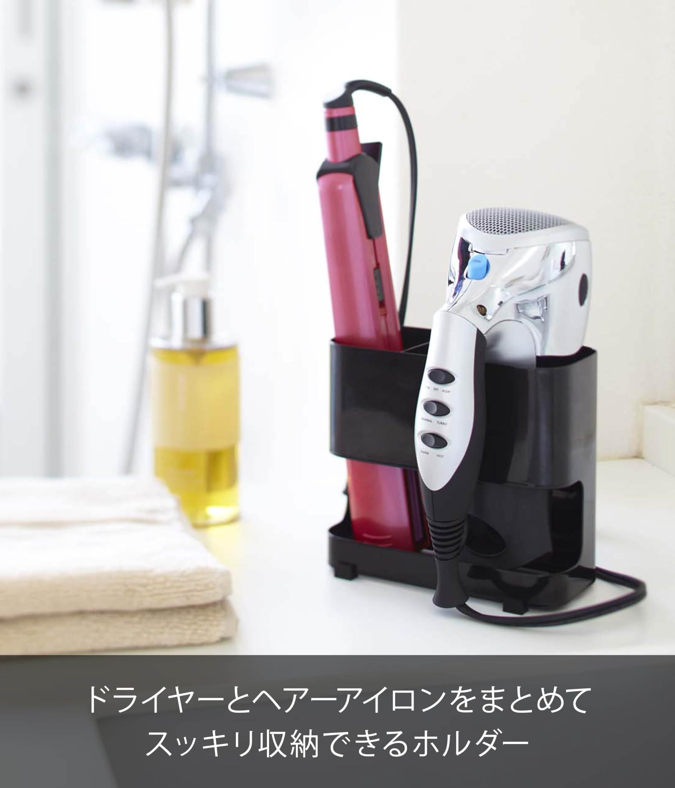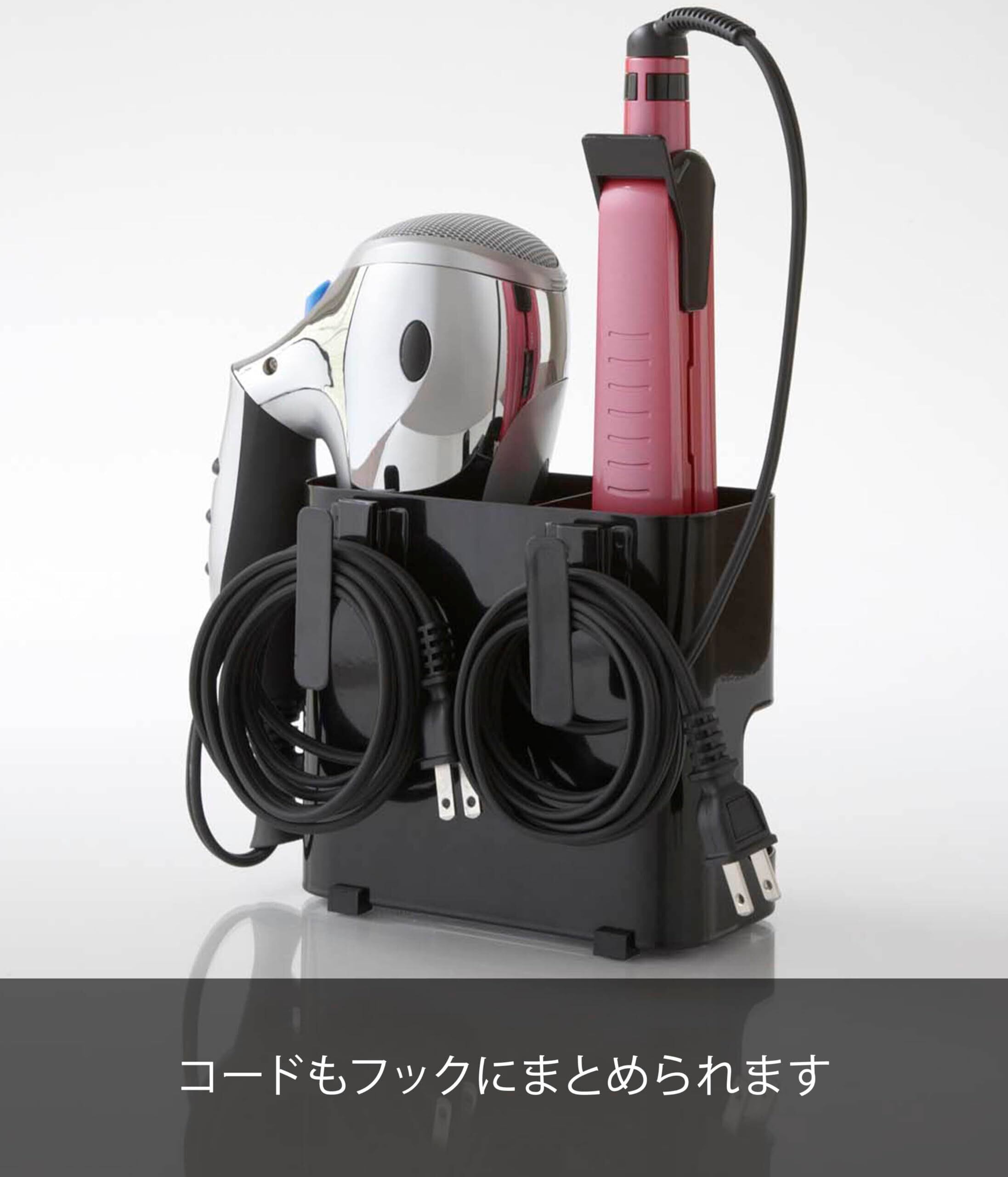山崎実業(Yamazaki) ドライヤー & ヘアーアイロンホルダー ブラック 約W16×D8.5×H14cm ボーテス ドライヤーホルダー ヘアアイロン収納 7594