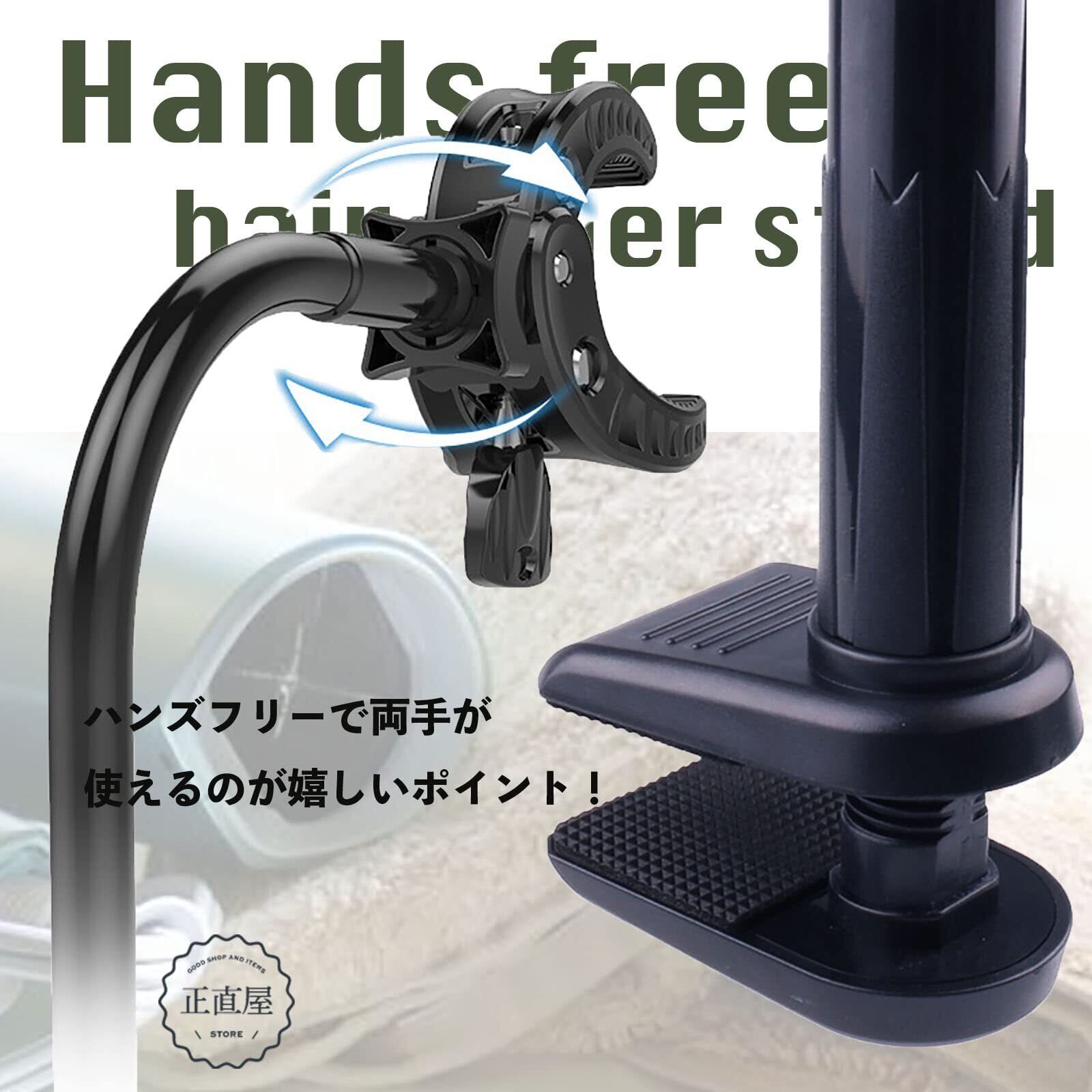ヘアードライヤースタンド ハンズフリー ヘアドライヤーホルダー ドライヤークリップ ドライヤークリップスタンド ドライヤーホルダー トリミング台 360℃回転可能