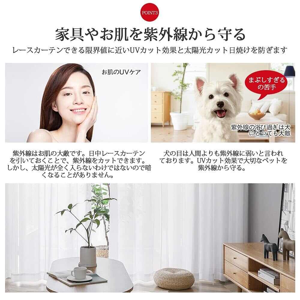 【夏用にぴったり!UVカット&日焼け防止】特殊なUVカット繊維を使用し、紫外線による家具や床の色あせを防ぎます。毎日使うレースカーテンだからこそ、目に見えないダメージもしっかりケア。日差しが強くなる春夏にもぴったり!新生活のインテリアを長く美しく保てます。