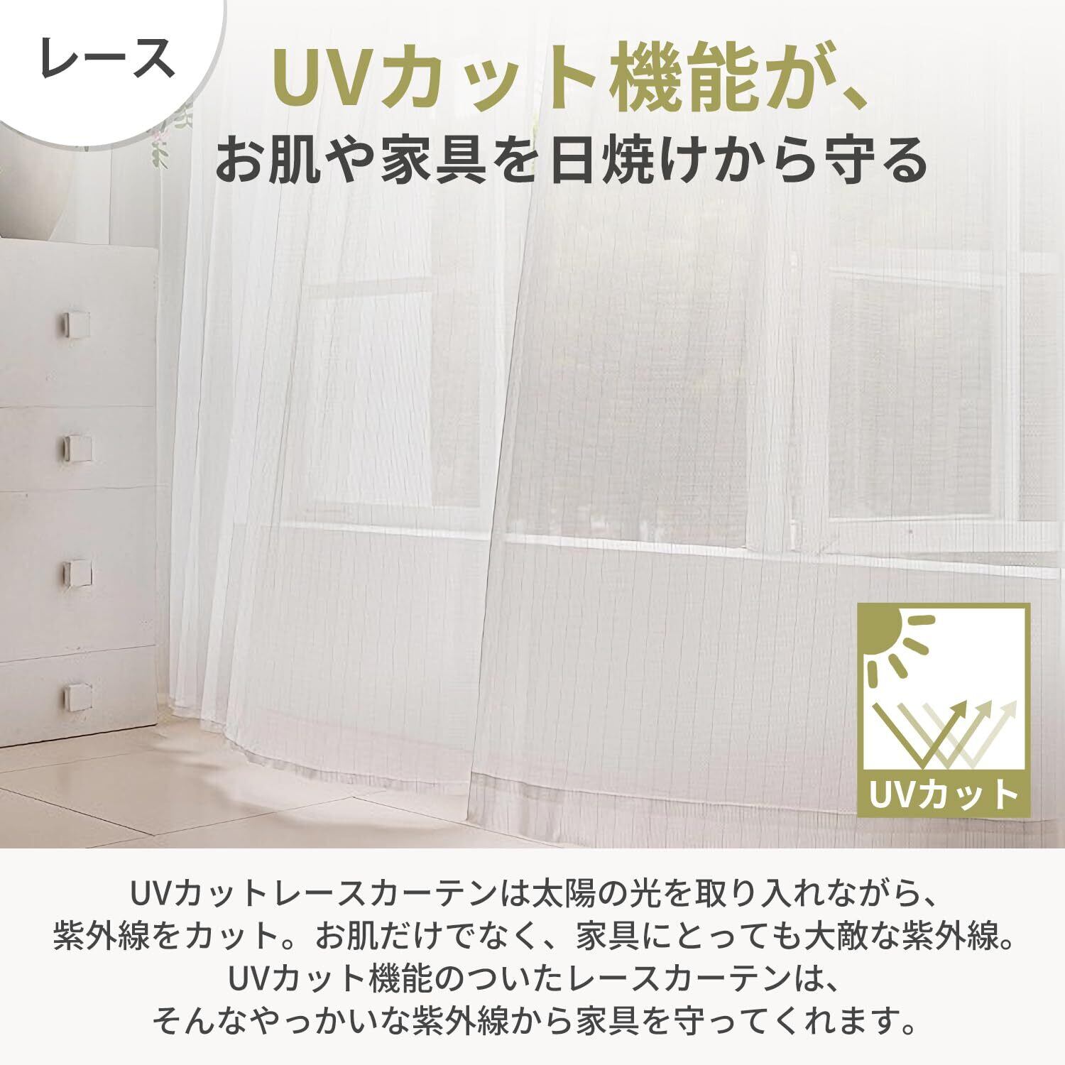 【プライバシー保護・UVカット】ミラーレースカーテンは、軽く透け感のある薄めの生地を採用し、外の景色を楽しみながら、プライバシーも保護してくれます。そして、UVカット機能がついて、太陽の光を取り入れながら、紫外線をカット。お肌や家具を日焼けから守ってくれます。