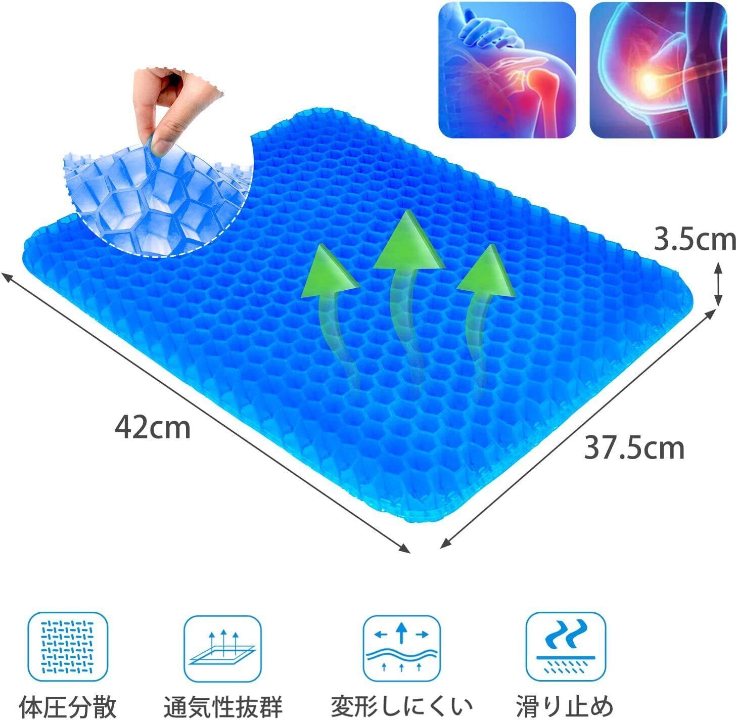 【通気性抜群&優れた柔軟性】日本のメッシュ弾性ソフトキャンディーゲル技術を採用し、ミツバチの巣のような構造で空気を順調に循環させ、独特な二重構造で柔軟性と弾力性を兼ね備え、従来品より良い柔軟性と優れた弾力性と放熱性を実現します。更に、優れた弾力性・復元力の高品質ゲルを採用しており、卵を置いて座っても割れない驚きのクッション性・高弾性!通気性が抜群、四季を問わず、いつでも快適にご使用できます。