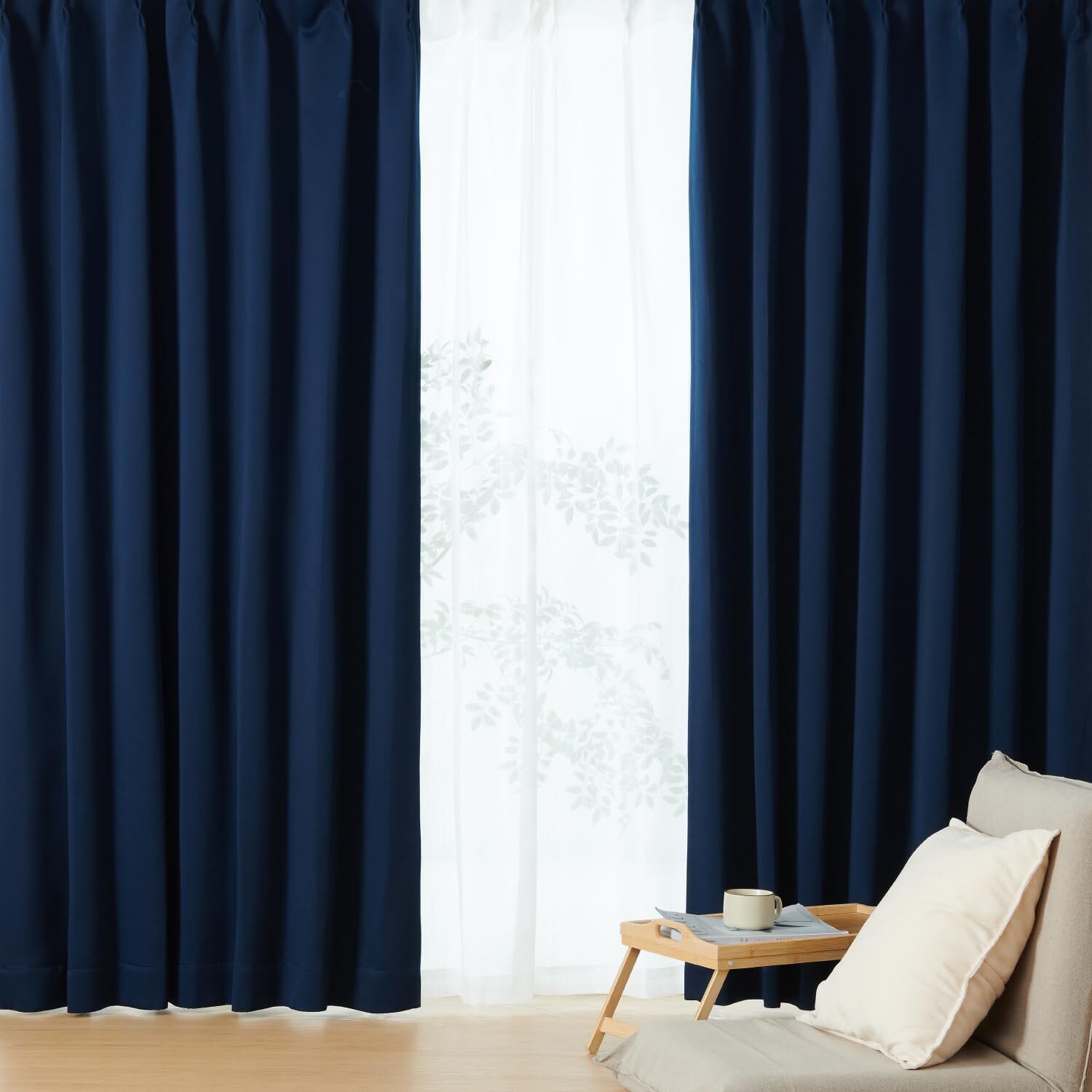 クモリ(Kumori) カーテン 4枚セット 遮光度99.99% 1級 遮光カーテン しっかり厚手 断熱 遮熱 防寒 防音 形状記憶加工 UVカット 遮像 節電効果 省エネ 洗濯可能 無地 寝室 リビング アジャスター フック付き(幅100cm×丈178cm・厚地2枚&レース2枚・ネイビー)
