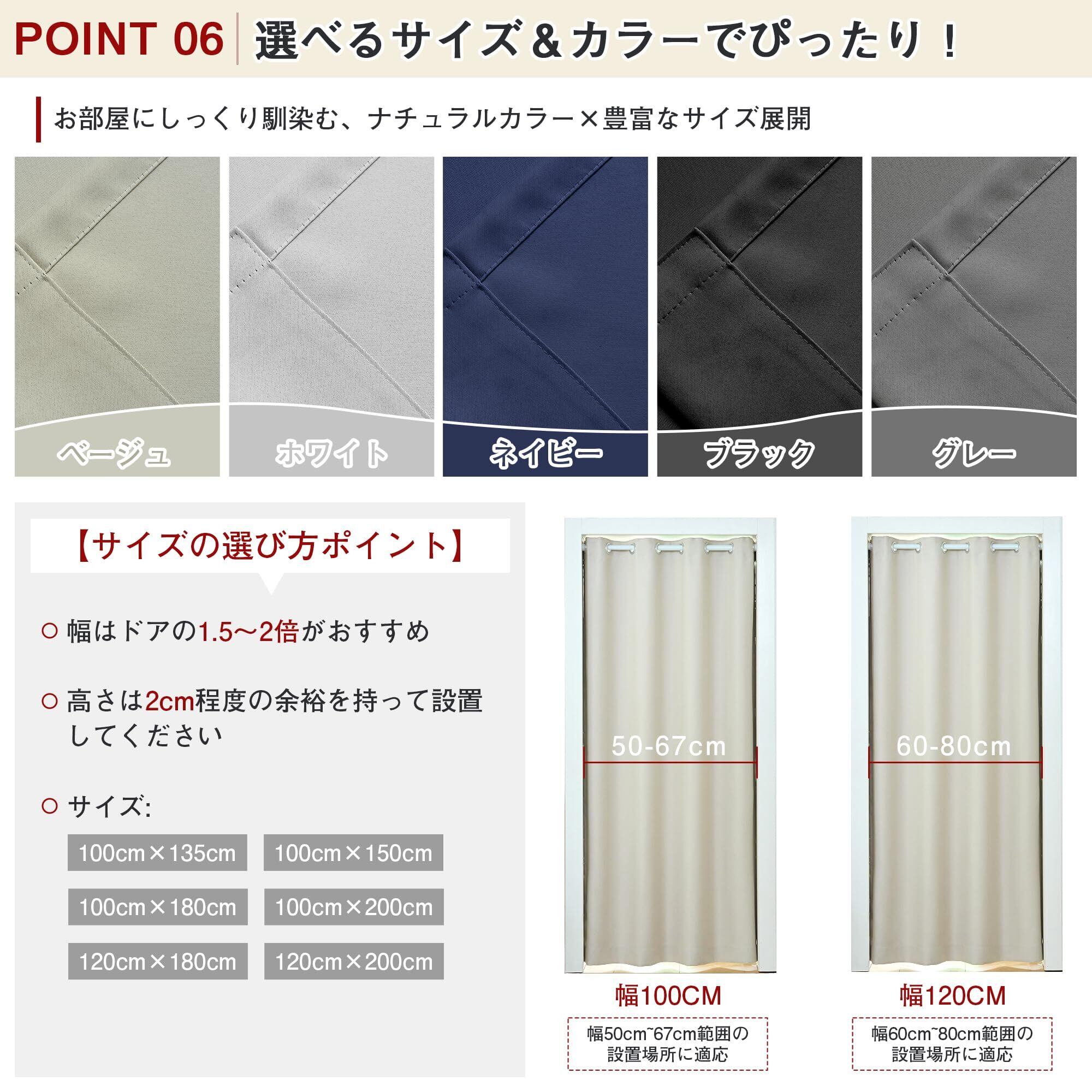 SUGOI カーテン 遮光1級 間仕切り 突っ張り棒 断熱 仕切り ハトメ型 目隠し 取付簡単 高密度 遮像 防音 防水 防カビ ドアカーテン 脱衣所 玄関 キッチン リビング対応 タイバック付き 1枚入り (ベージュ, 120*200)