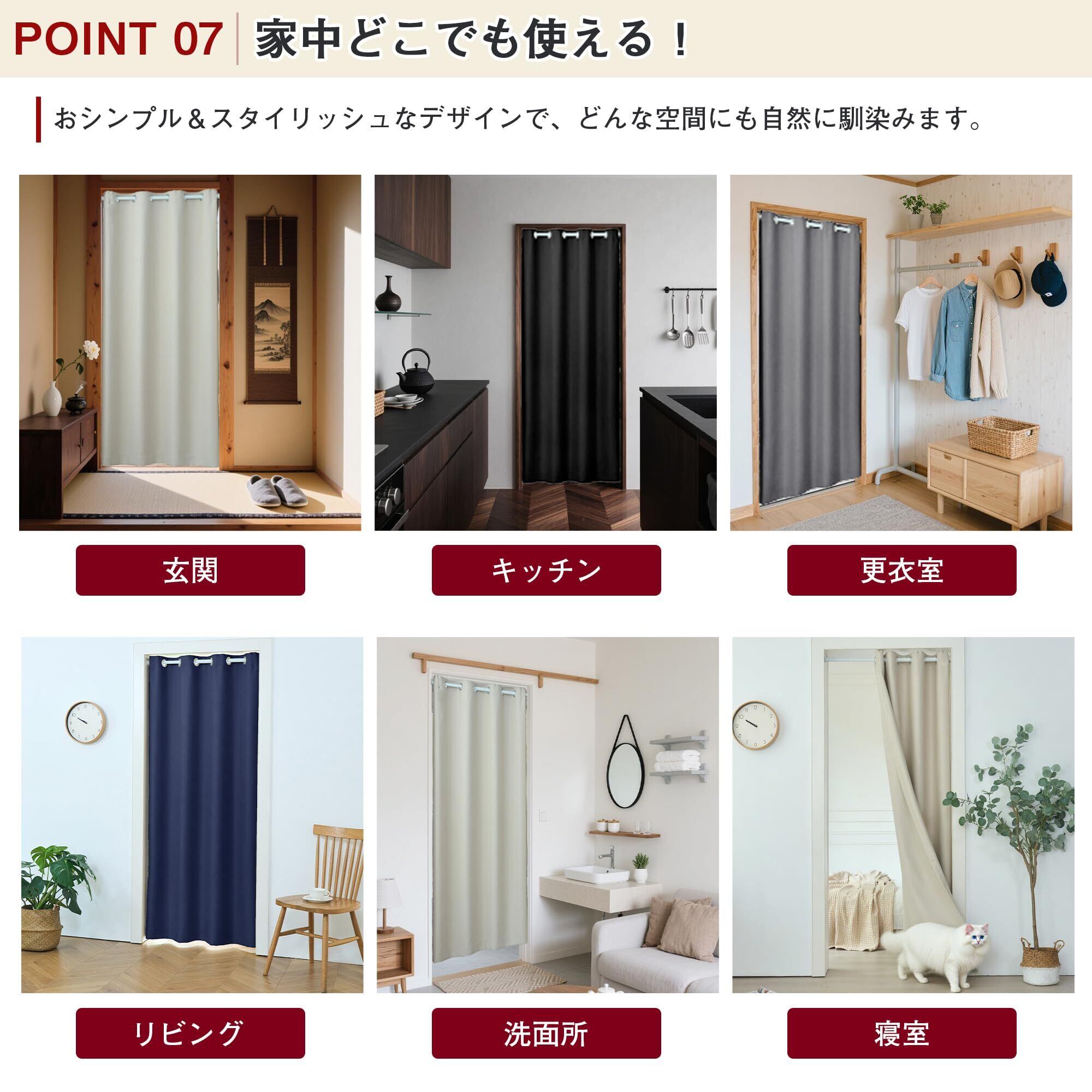 【1級遮光&防音効果で快適な睡眠環境をサポート】強力に光や紫外線を99.99%カットし、朝のまぶしい日差しや街灯の光を遮断する断熱 のれんです。さらに高密度生地による防音効果で生活音を軽減し、静かで落ち着いた空間を実現。外部の光や音に邪魔されないので、昼寝や夜勤明けの休息に最適。プライバシーを守り、深い眠りと快適な毎日をサポートします。