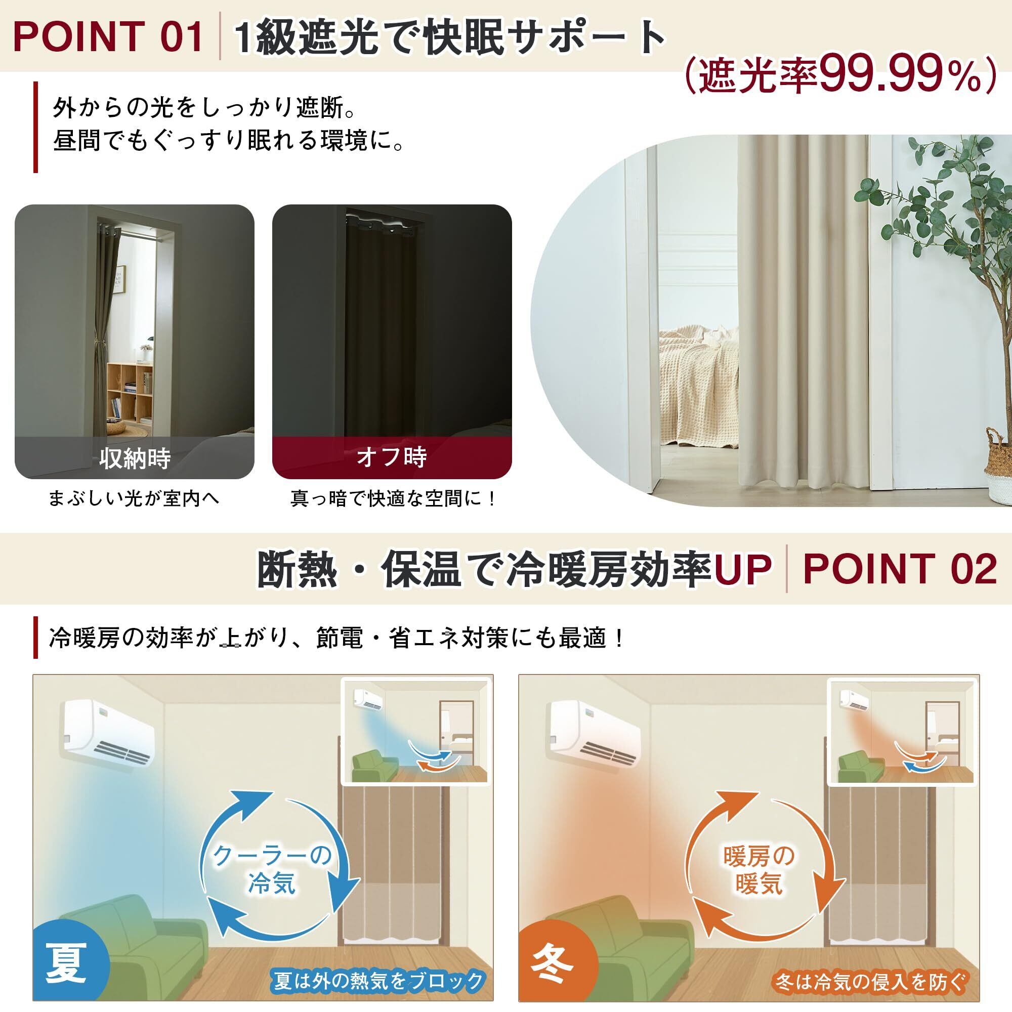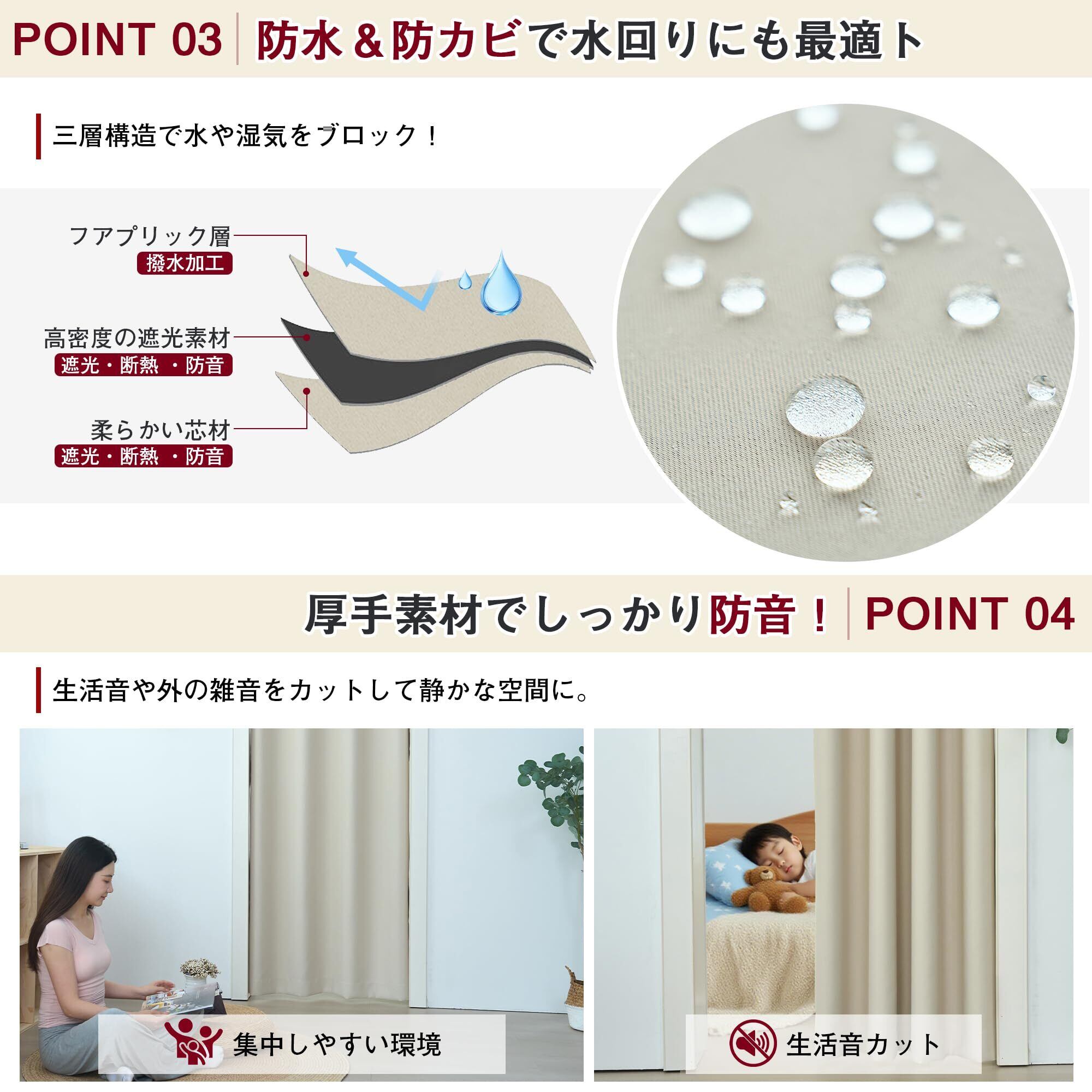 【省エネ効果バツグン!夏は涼しく冬は暖かい快適空間】高い断熱効果でエアコンの効きがアップし、電気代節約に直結!暑い夏は外からの熱をしっかり遮断し涼しく、寒い冬は暖かさを逃さず快適な室内温度をキープ。間仕切りカーテン断熱仕様で、家計にも環境にも優しく、家族みんなが過ごしやすい空間を実現します。