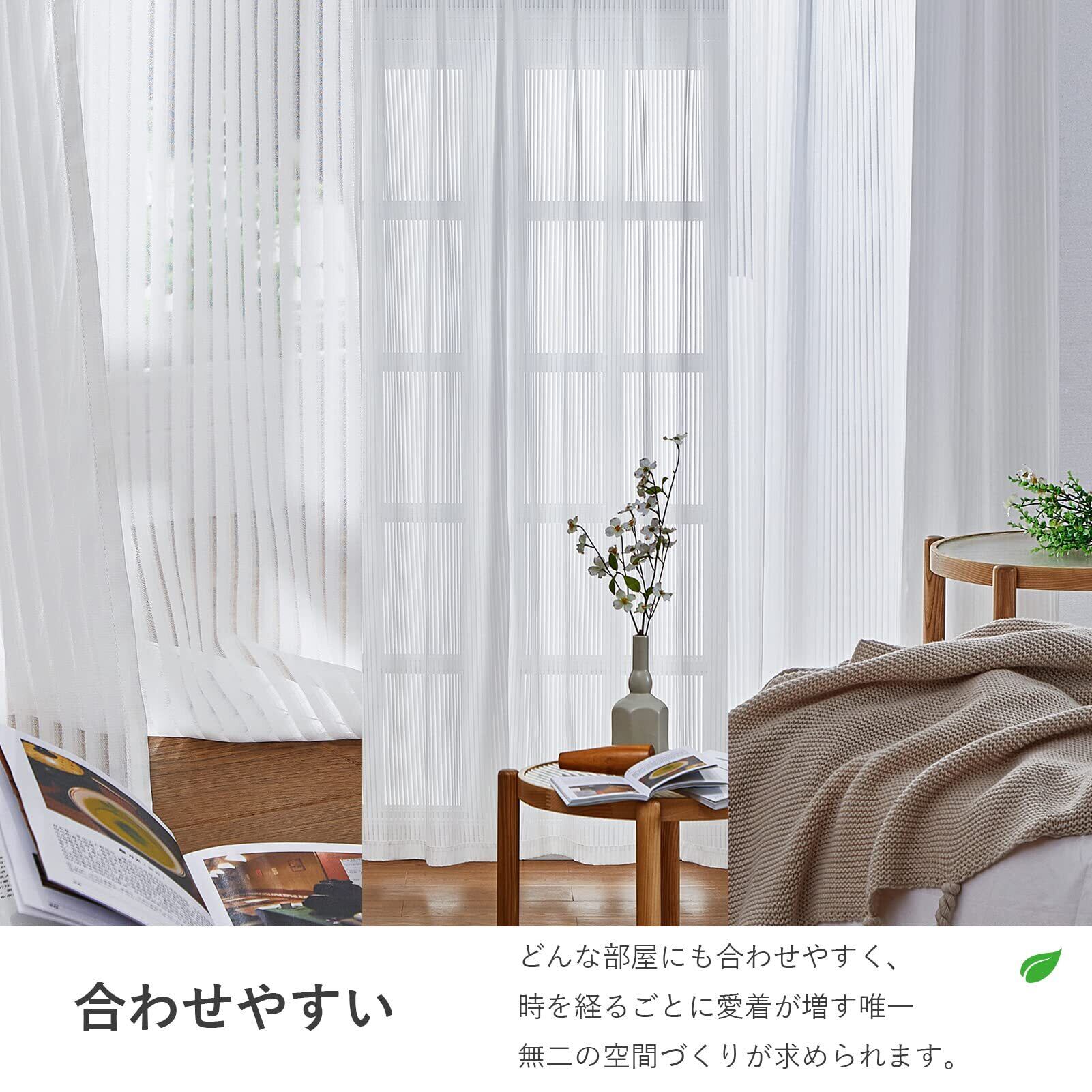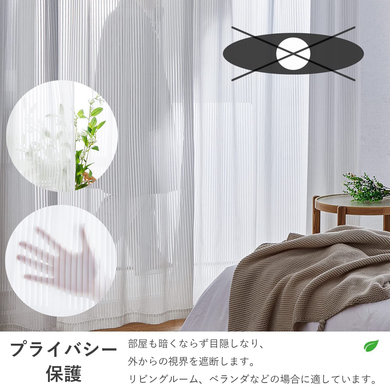 Topfinel レースカーテン 外から見えにくい UVカット 省エネ 遮熱 幅150cmx丈130cm 1枚入り カーテン レース おしゃれ 無地 白 ストライプ 北欧