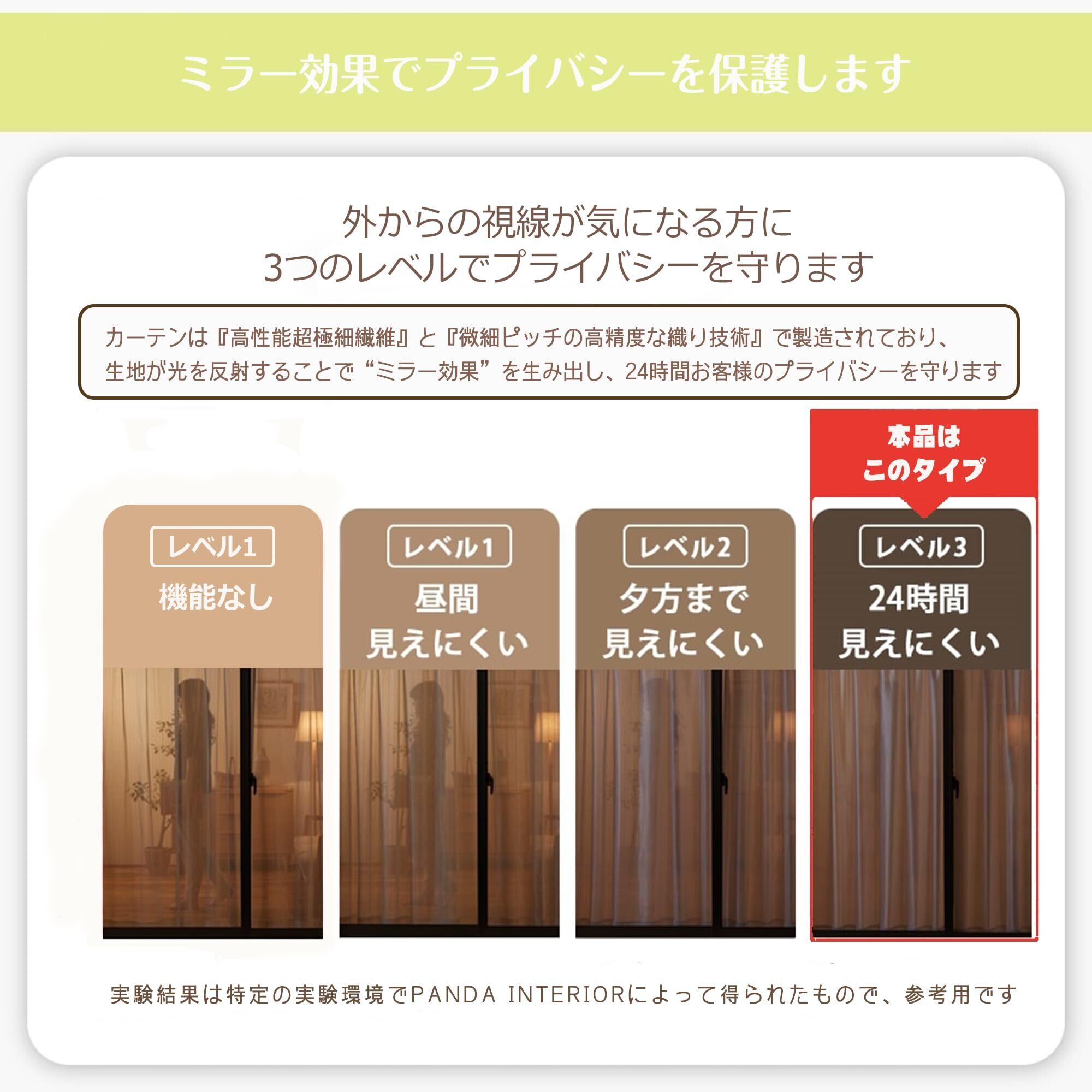 PANDA INTERIOR レースカーテン 2枚組 遮光 ミラー uvカット 透けない ホワイト おしゃれ 遮像 遮熱 断熱 保温 既成カーテン 光は取り込みプライバシーを守る 夜でも外から見えにくい 出窓用 子供ルーム 部屋 居間 寝室 カフェ 洗える 洗濯機対応(丈198cm 幅100cm-2枚)