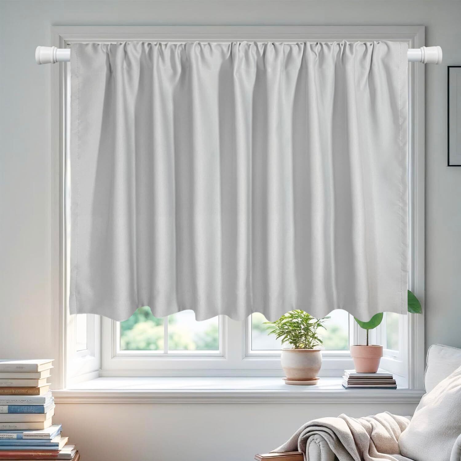 カフェカーテン 遮光 小窓用 タッセル付き 70cm丈 UVカット 省エネ 目隠し 無地 出窓 キッチン トレイ 洗える 間仕切り ライトグレー 丈70㎝ⅹ幅140㎝ 1枚入