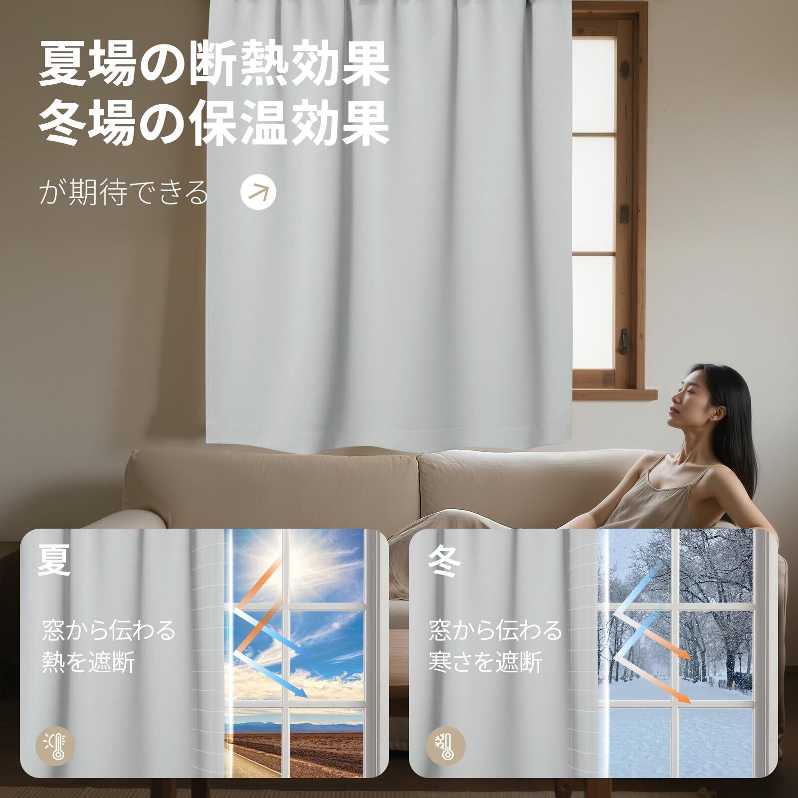 Joydeco 1級遮光 カフェカーテン 遮光カーテン 小窓用 丈60cm 幅100cm グレーホワイト 1枚入り 断熱 保温防寒 昼夜目隠し 無地 UVカット 節電対策 省エネ 洗える 間仕切り 厚手 キッチン 浴室 トレイ 子供部屋 廊下