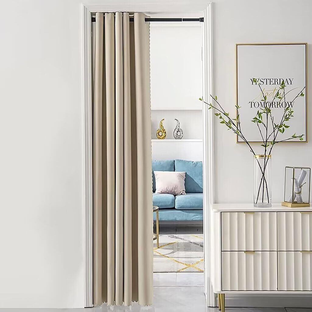 唐土工房 間仕切りカーテン 断熱防寒 のれん おしゃれ 遮光 暖簾 170cm丈 幅100cm アコーディオンカーテン 間仕切り ロング 北欧 防音 目隠し ドアカーテン ハトメ式 突っ張り棒カーテン 無地 厚手 保温 冷気遮断 玄関 入り口 仕切り 1枚 洗える ベージュ
