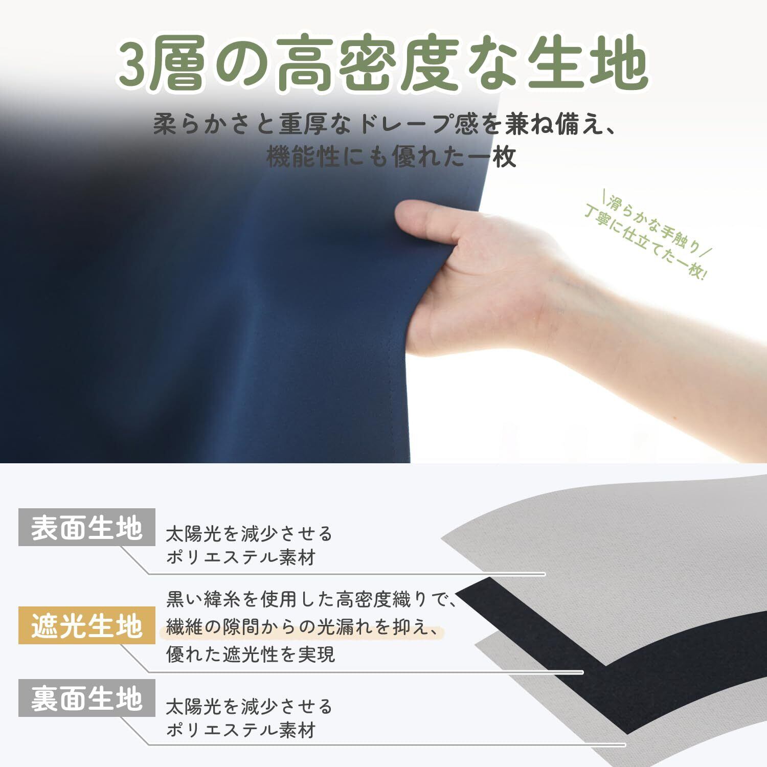 【商品仕様】※サイズ:幅85cmx丈150cm ※素材:ポリエステル100%の生地を採用し、シルクのような柔らかさとマットな質感を実現。優れたドレープ性を持ち、耐久性に優れ、長期間使用可能。※機能:遮光1級/遮熱保温/間仕切り/ウォッシャブル。(ご注意:つっぱり棒は付属しておりません)