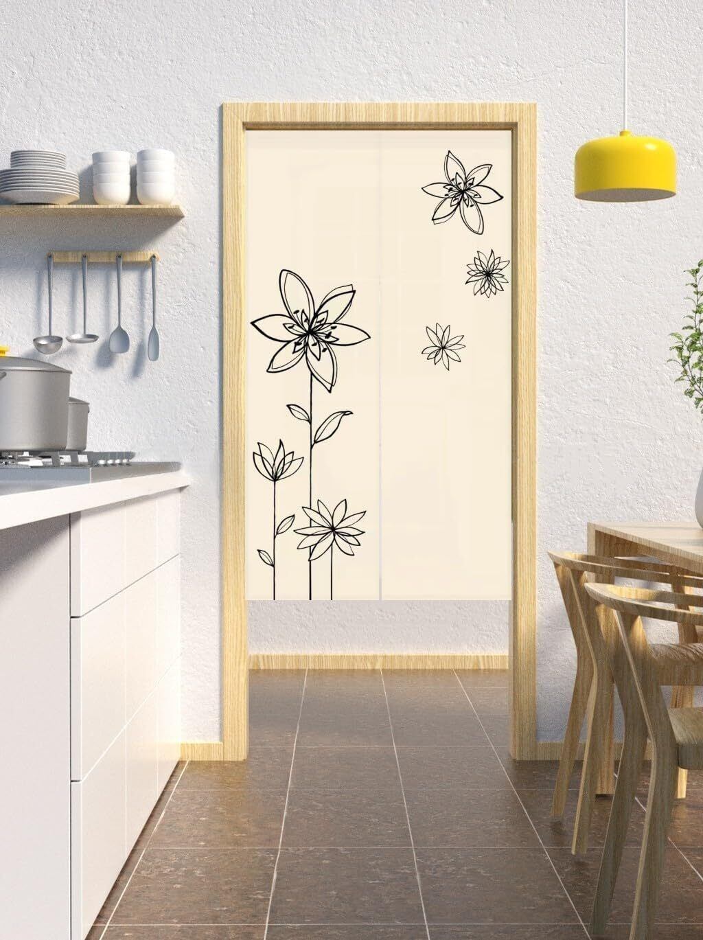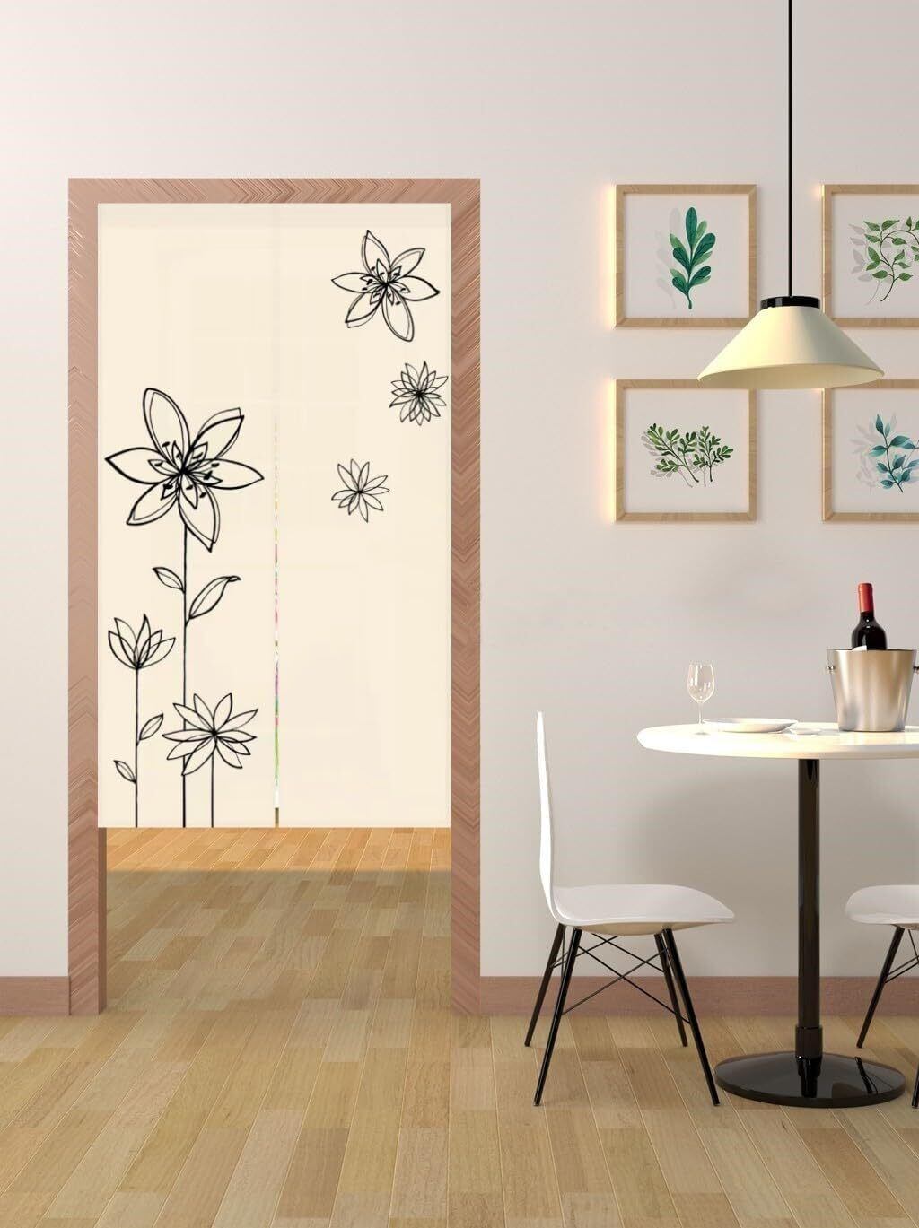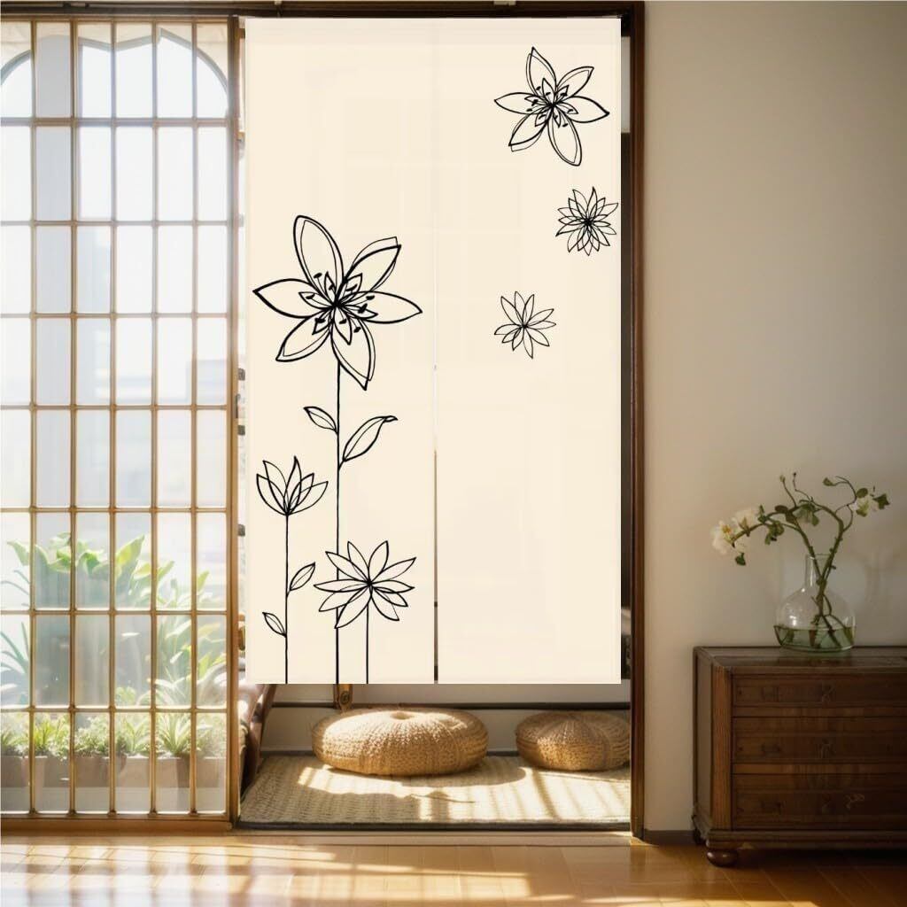 のれん 暖簾 間仕切りカーテン目隠し見えにくい おしゃれ 玄関 温泉 旅館 ホテル 廊下 お風呂 洗面所 トイレ ドアカーテン キッチン リビング 飲食店 出入り口 幅75丈120cm (ホワイト花, 幅75x丈120cm)