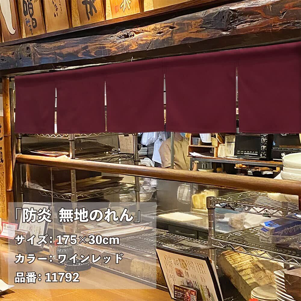 のれん工房 のれん 防炎 店舗用 飲食店 5つ割れ 幅175×丈30cm 無地 暖簾 カウンターのれん ワインレッド 全14色 11792