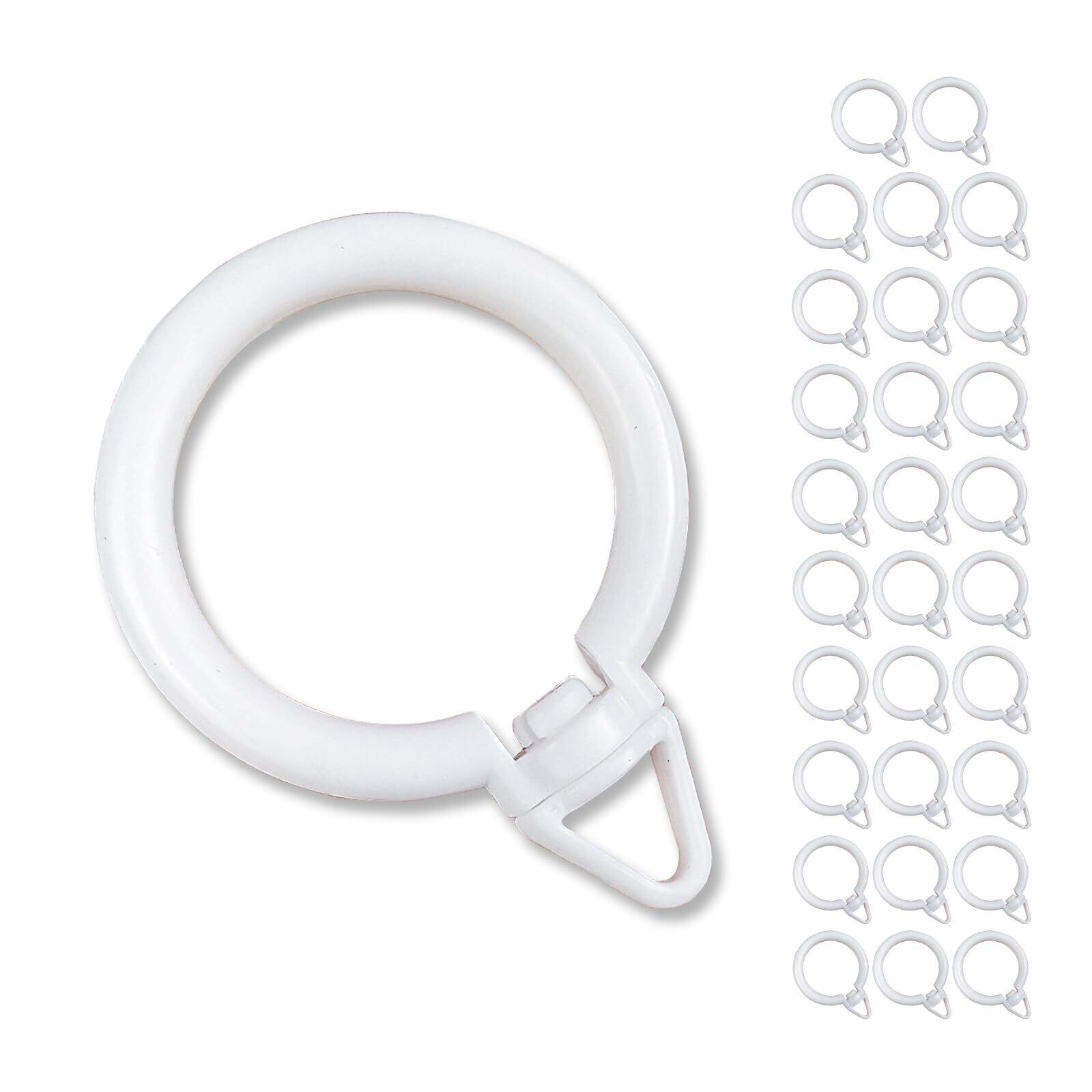 Anboli スライドリング カーテンリング フック ホワイト 伸縮ポール用、内径約33mm、つっぱりスティックグ用カーテンリン 360°リターン転できる 30個 インストールが简単 (白)