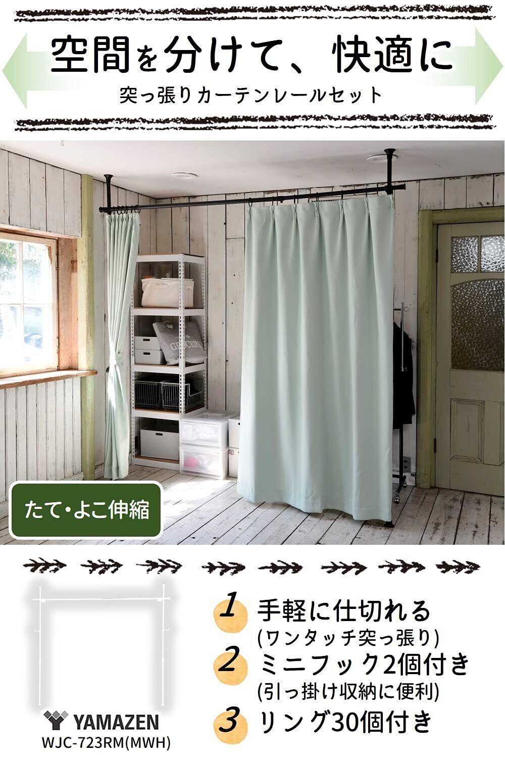 山善(YAMAZEN) カーテンレール つっぱり式 (間仕切り) かんたん突っ張り カーテンリング/フック付 幅90-273×奥行10×高さ190-260cm パーテーション 組立品 マットホワイト WJC-723RM(MWH) テレワーク