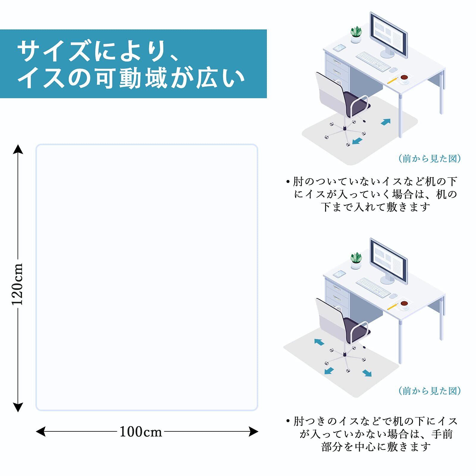【自由カットOK】サイズ:幅100×奥行120×厚み0.15cm、必要に応じてハサミで好きな形にカットできます。pvcチェアマットはインテリアに馴染みやすくてフローリングや畳が溶ける半透明タイプなので、圧迫感がなくお部屋の雰囲気を損なうことなく、どんなお部屋やインテリアも違和感なくマッチします。チェアにはもちろん、キッチンや食卓、ペットのケージ周りなど幅広く使えます!ヒント: 記載されているサイズは規定値です。個体により若干の誤差((1-2cm))が発生致しますので、あらかじめご了承下さい。