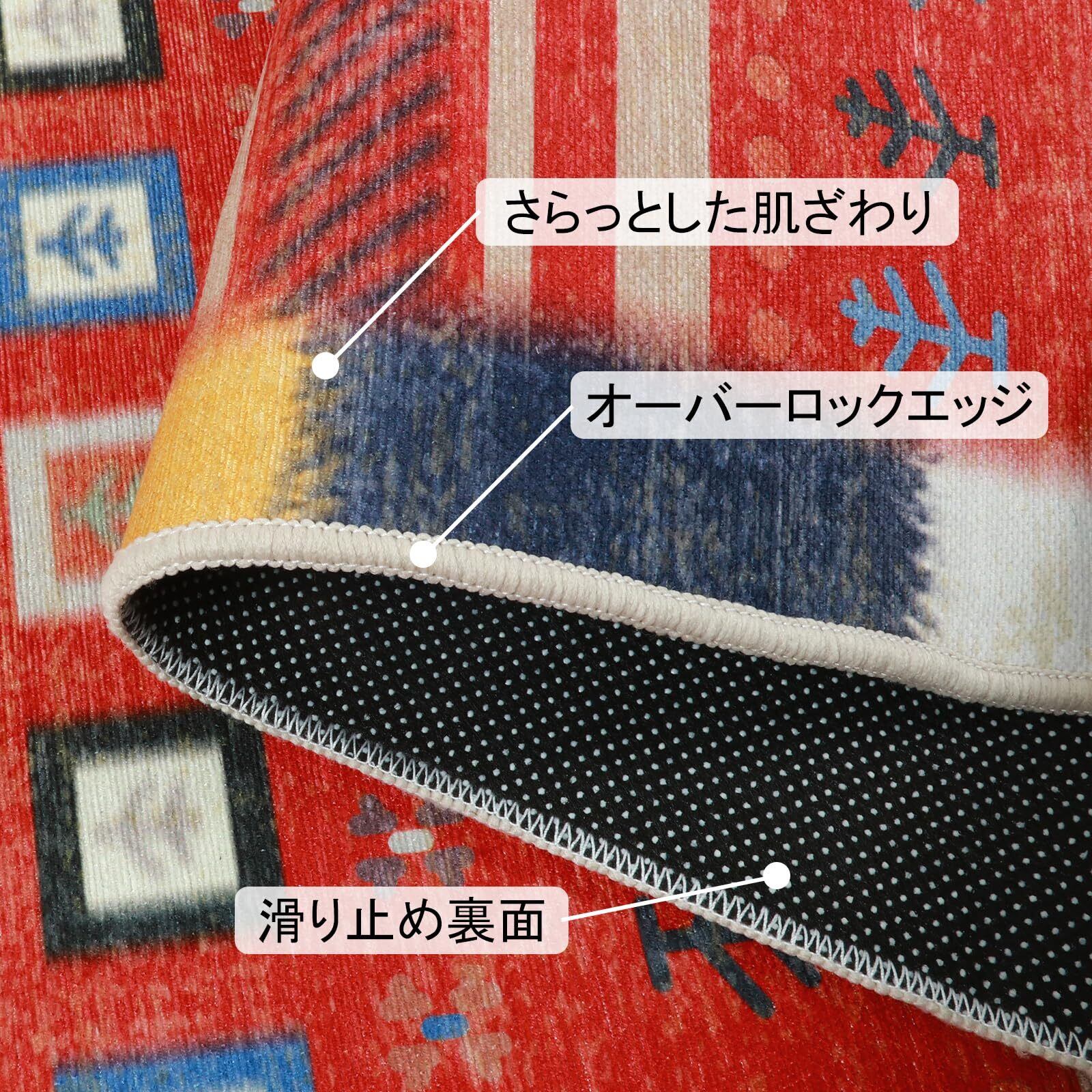 【商品仕様】サイズ:90x150cm 厚さ:約5~8mm(薄手タイプ)。表面素材:100%ポリエステル、裏面素材:不織布(滑り止め加工)。オーバーロック加工の端、遊び毛が出たり、形を崩れたりしにくい。梱包:折り畳み。※梱包により生じた折り目は時間の経過とともに平らになります。 上に重いものを置くと、カーペットのしわが早く消えます。