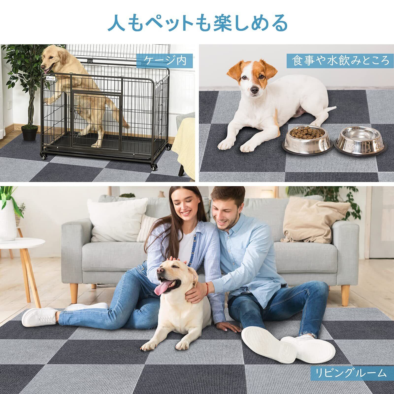 【適応性が広い】カーペットを敷いた床は保温性あり、防音性、遮音性に優れ、ホコリも舞上がりにくくて、ずれないという特性があります。■使用場所が多い:①玄関周り(自転車や椅子などの床キズ.汚れ防止に便利。) ②廊下(老犬や高齢者は足腰が弱くなり、滑り止め対策として) ③キッチン(ガラスや陶器の食器を落とした場合には、衝撃を吸収してくれるので割れにくい) ④室内(落下音や椅子を引く時の衝撃音を吸収軽減するため、防音対策に最適)など。