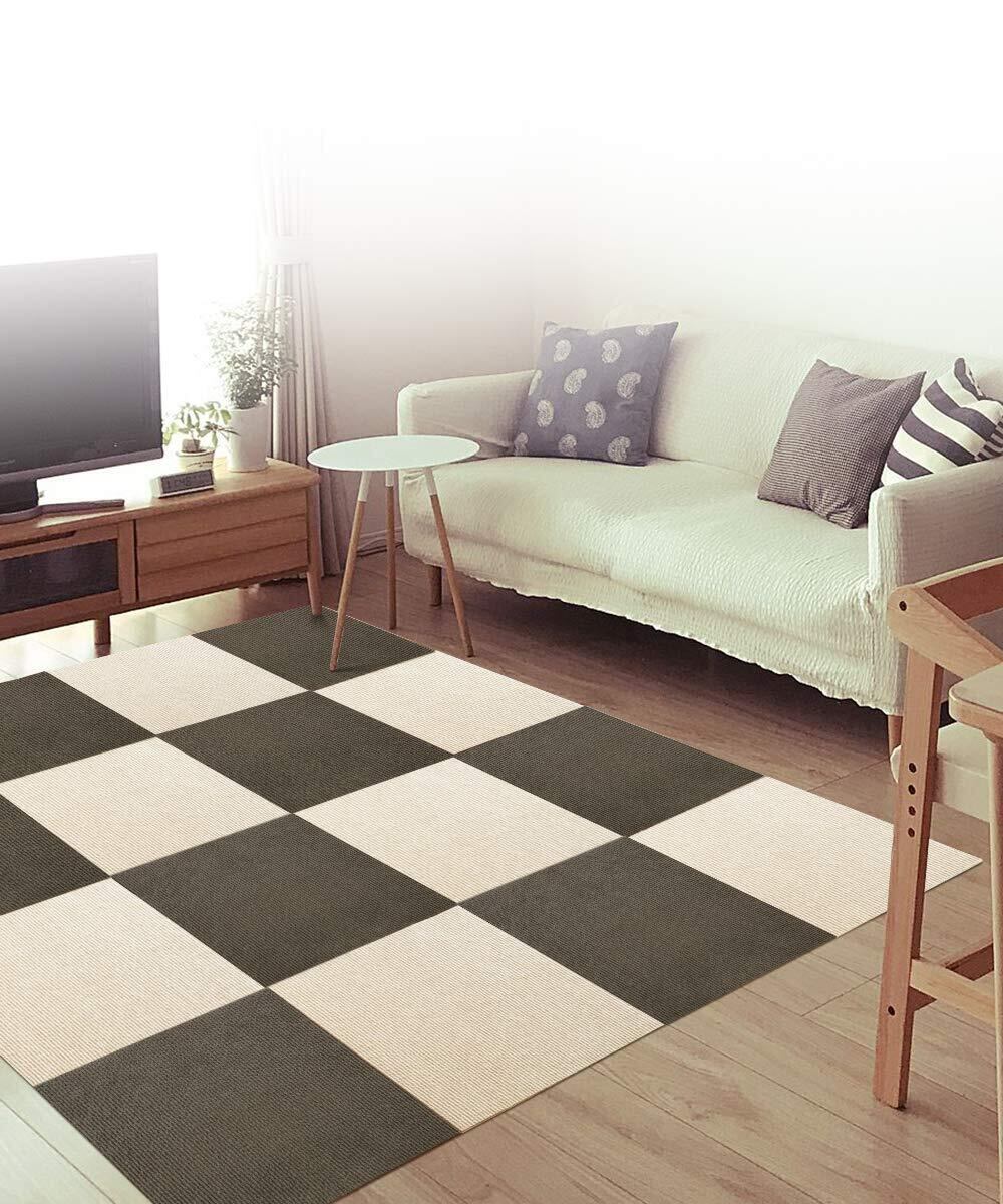 【ずれない 吸着タイルカーペット】空気が抜け真空状態になって無数の吸盤ができたようなくっつく仕組みだから、動き回ってもマットはズレません。厚み約4mmのマットですので、つまずきにくく、扉の開閉の妨げにもなりません。引っ掛かったりする恐れが少なくなる。高齢者や老犬は足腰が弱くなり、滑り止め対策として良いものです。