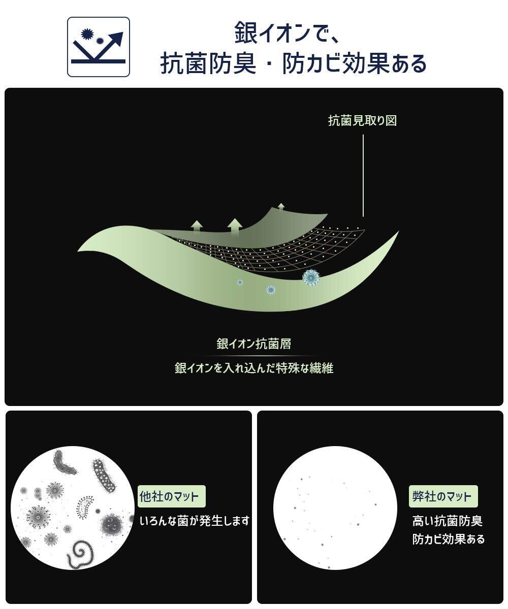 【保温性/耐久性/抗菌性ある素材 】■裏面はアップグレードされたポリウレタン素材、他の製品より柔らかくて、耐久性があり、フローリングに長時間ついても糊のような粘着質はつかない。保温性に優れて、冬や冷房の冷たいフローリングで寒さの心配もありません。■表面は銀イオンを入れ込んだ特殊な繊維で、高い抗菌防臭・防カビ効果で、マットを清潔に保ちます。