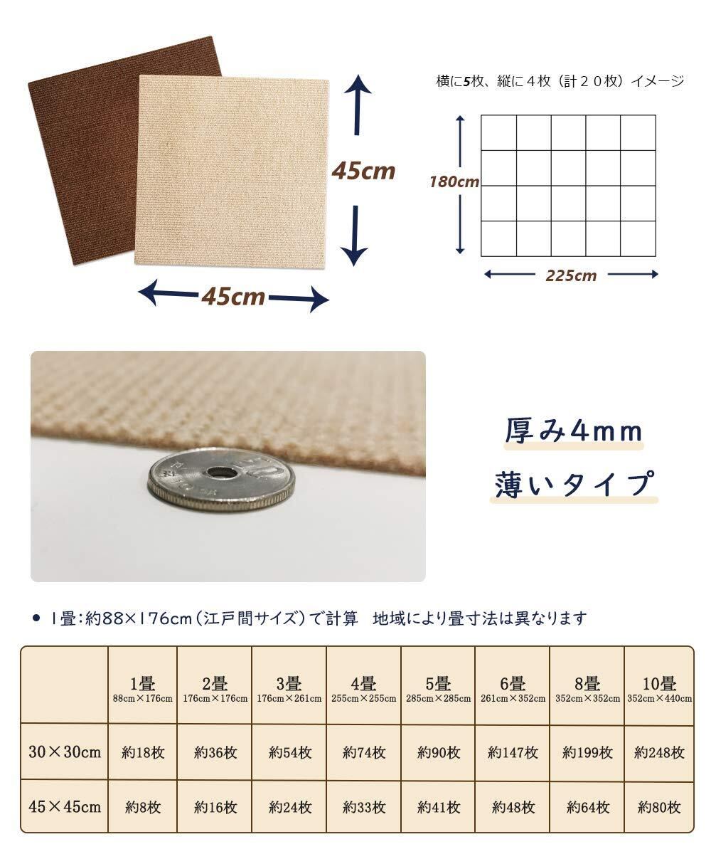 FUNHOO ジョイントマット 大判サイズ タイルカーペット ずれない 防音 洗えるカーペット ペット用 パンチカーペット ペット/高齢者の滑り止め対策 【45*45cm 40枚 ブラウン濃/薄】