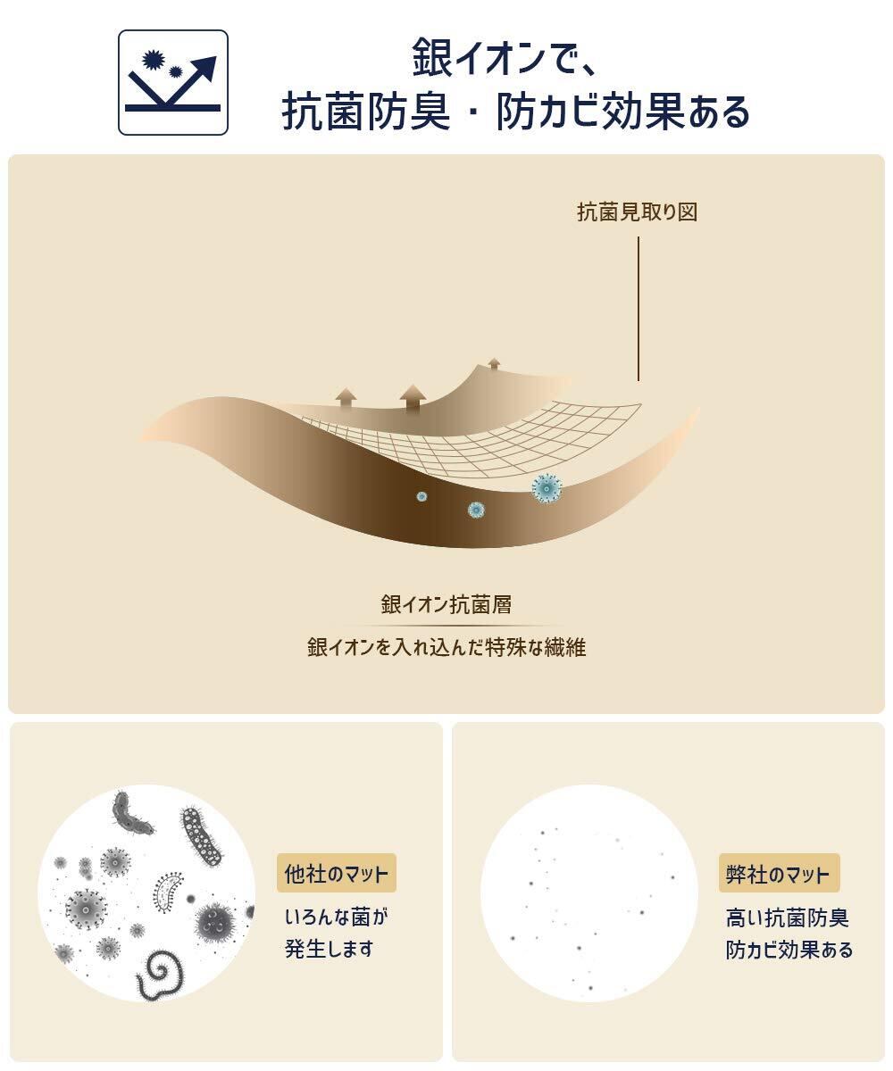 【保温性/抗菌性あるアップグレード素材】■裏面はアップグレードされたポリウレタン素材、他の製品より柔らかくて、耐久性があり、フローリングに長時間ついても糊のような粘着質はつかない。保温性に優れて、冬や冷房の冷たいフローリングで寒さの心配もありません。■表面は銀イオンを入れ込んだ特殊な繊維で、高い抗菌防臭・防カビ効果で、マットを清潔に保ちます。