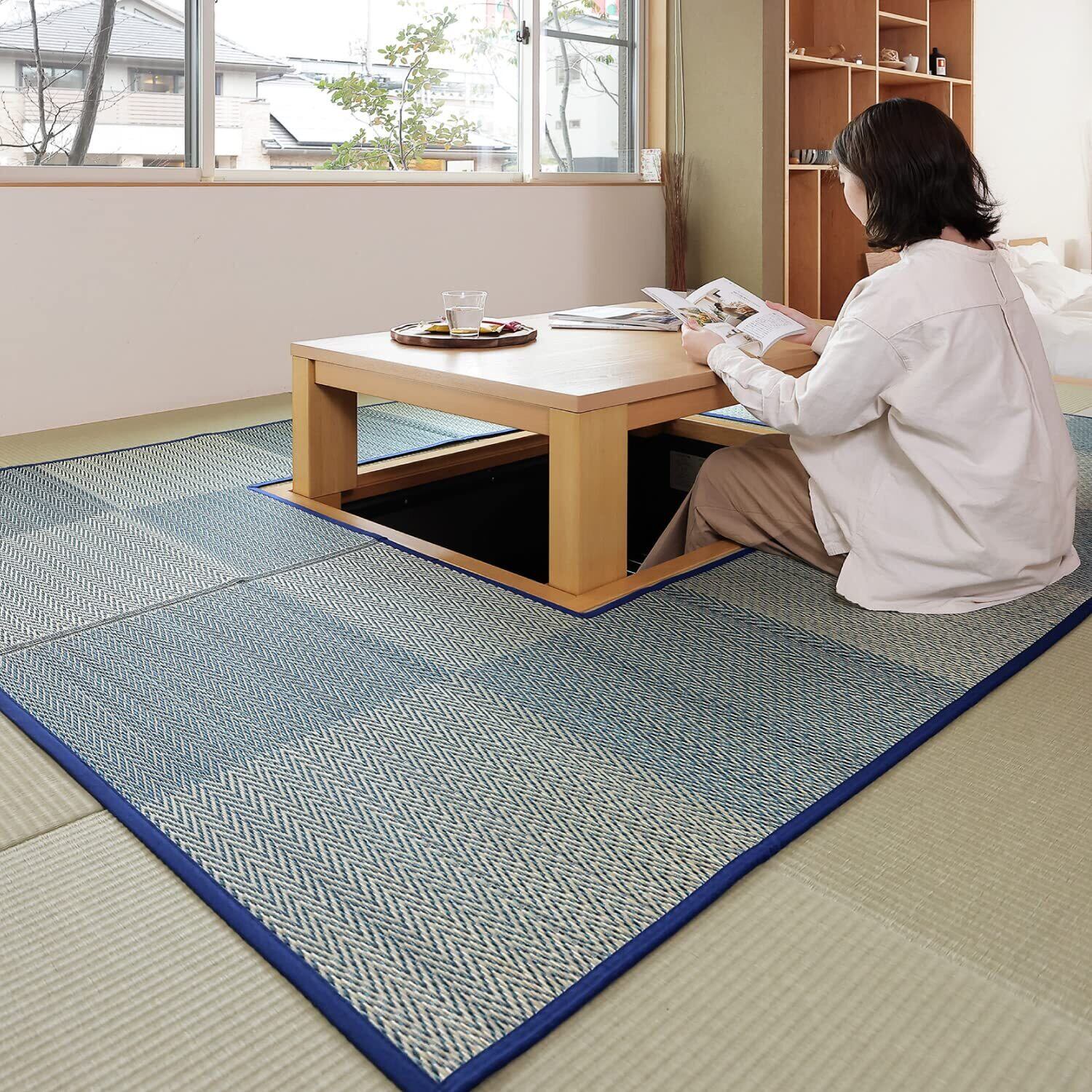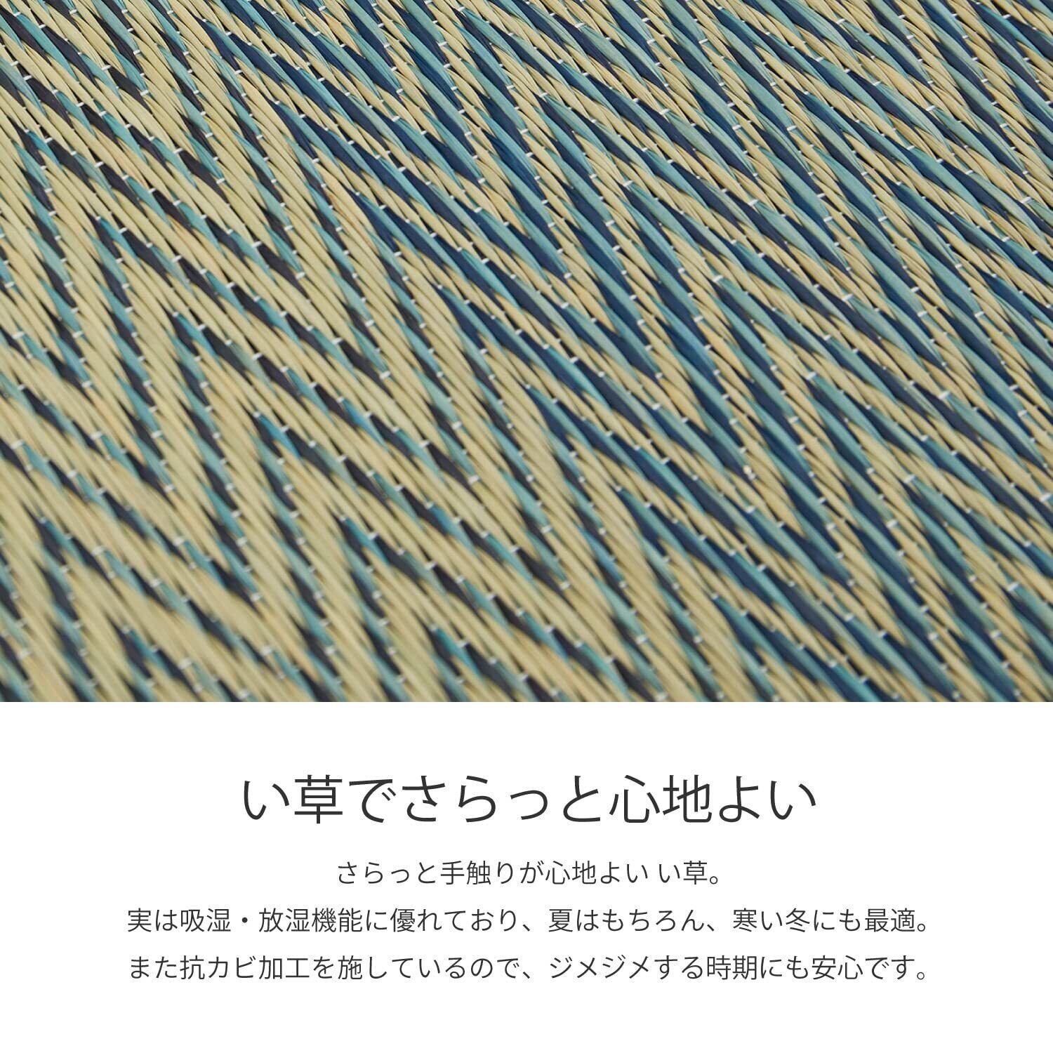 萩原 掘りごたつ対応 い草ラグ 裏貼り ブルー 約191×191cm い草カーペット 抗カビ 市松模様