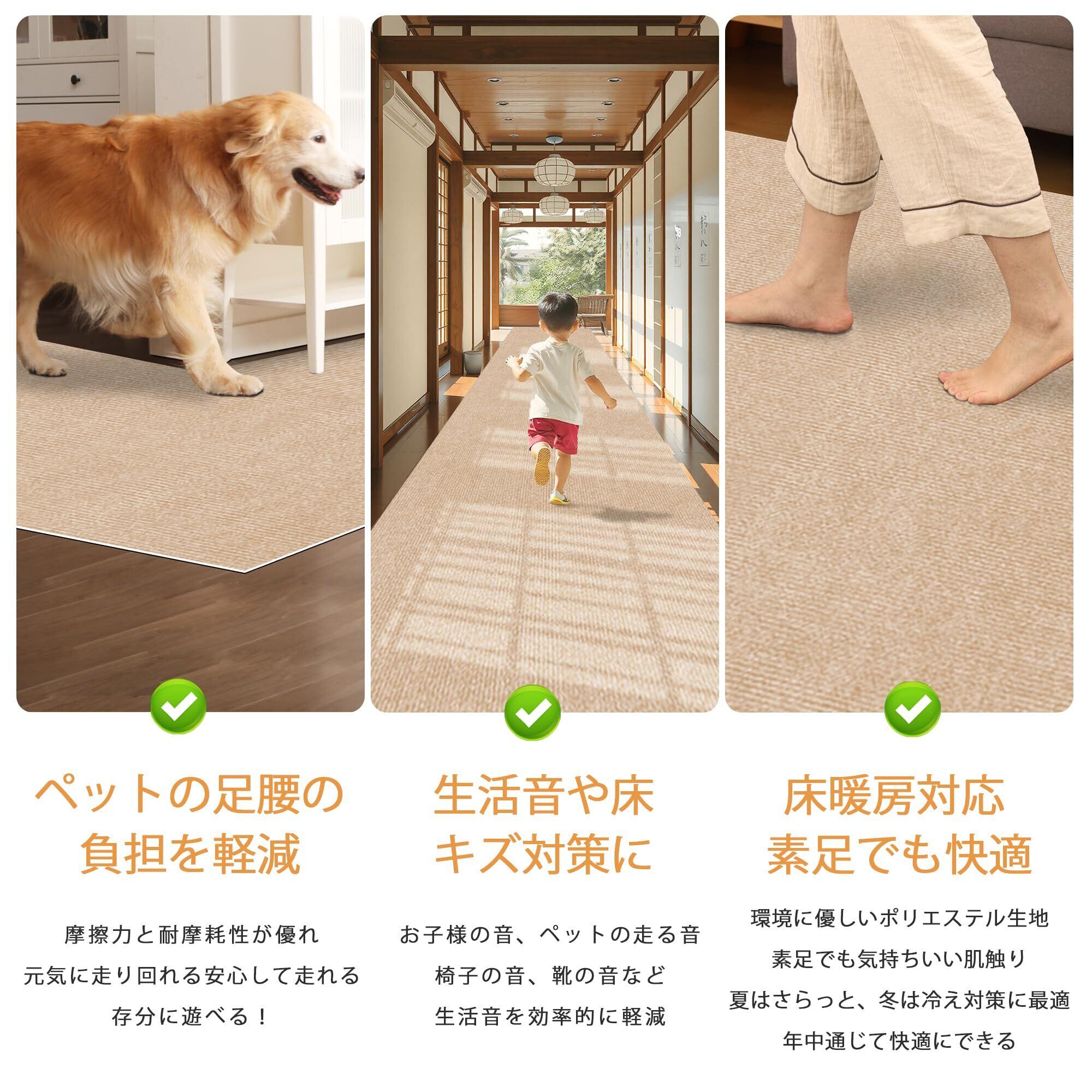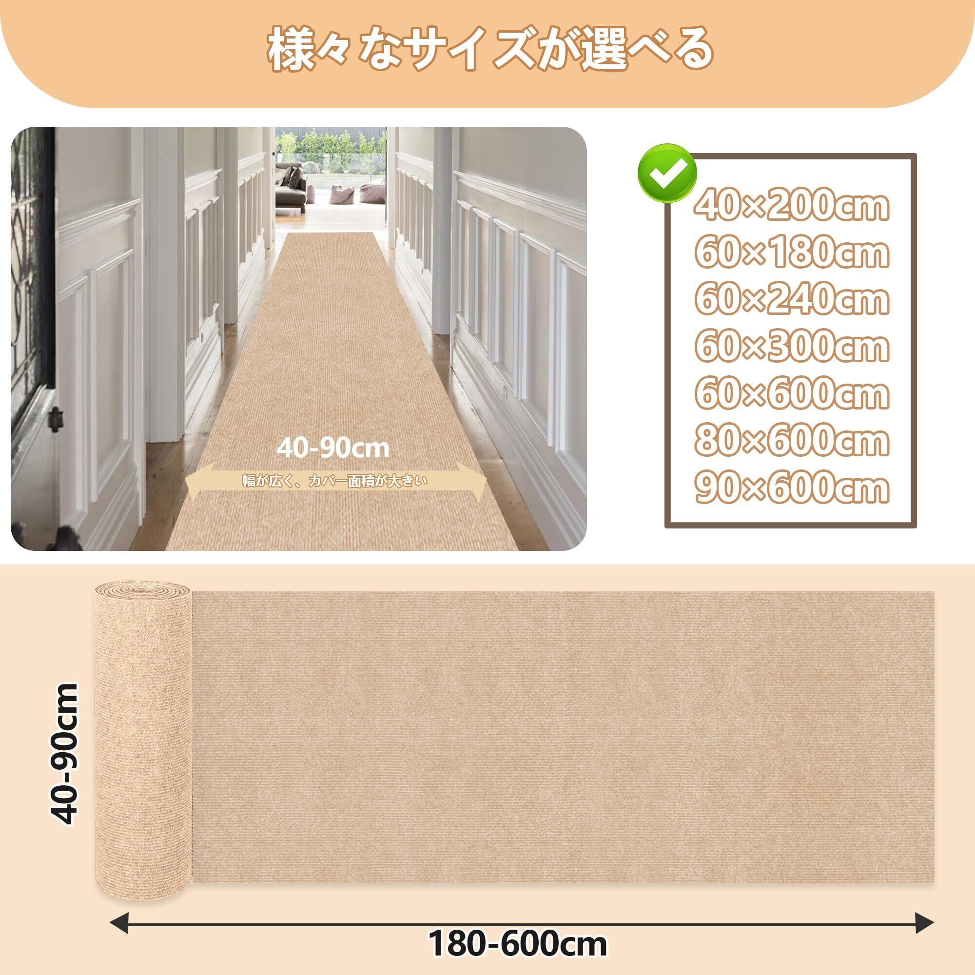 【 限定ブランド】廊下 ロングカーペット 吸着マット HDMOD 滑り止め 廊下敷き 約40×200cm 厚さ4mm ロールカーペット 洗える 防音 ラグ 無地 ペット対応 薄い 玄関 階段マット (ベージュ)