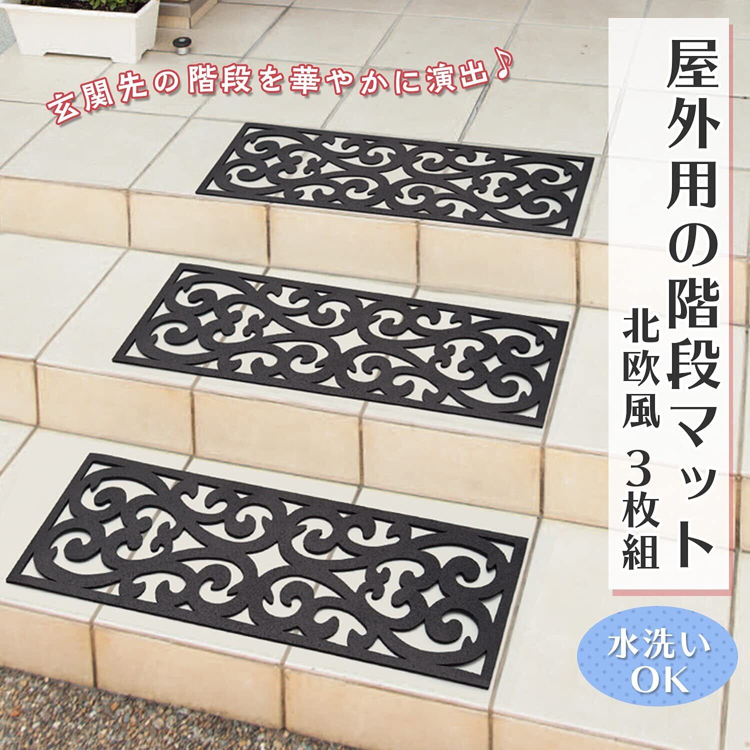 おしゃれな屋外用の階段マット。人気の北欧柄で玄関を華やかに演出します