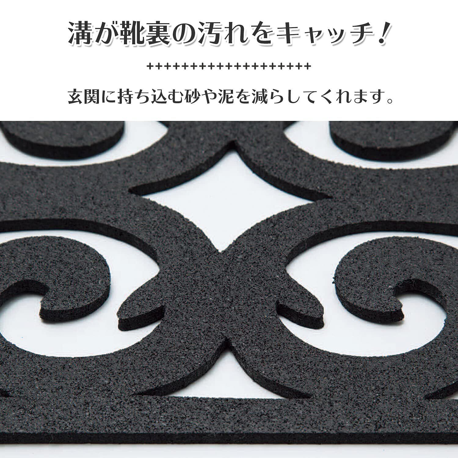 表面の溝が靴裏の汚れをキャッチ。玄関に持ち込む砂・泥汚れを減らせて、雨の日などの滑り止めにもなります