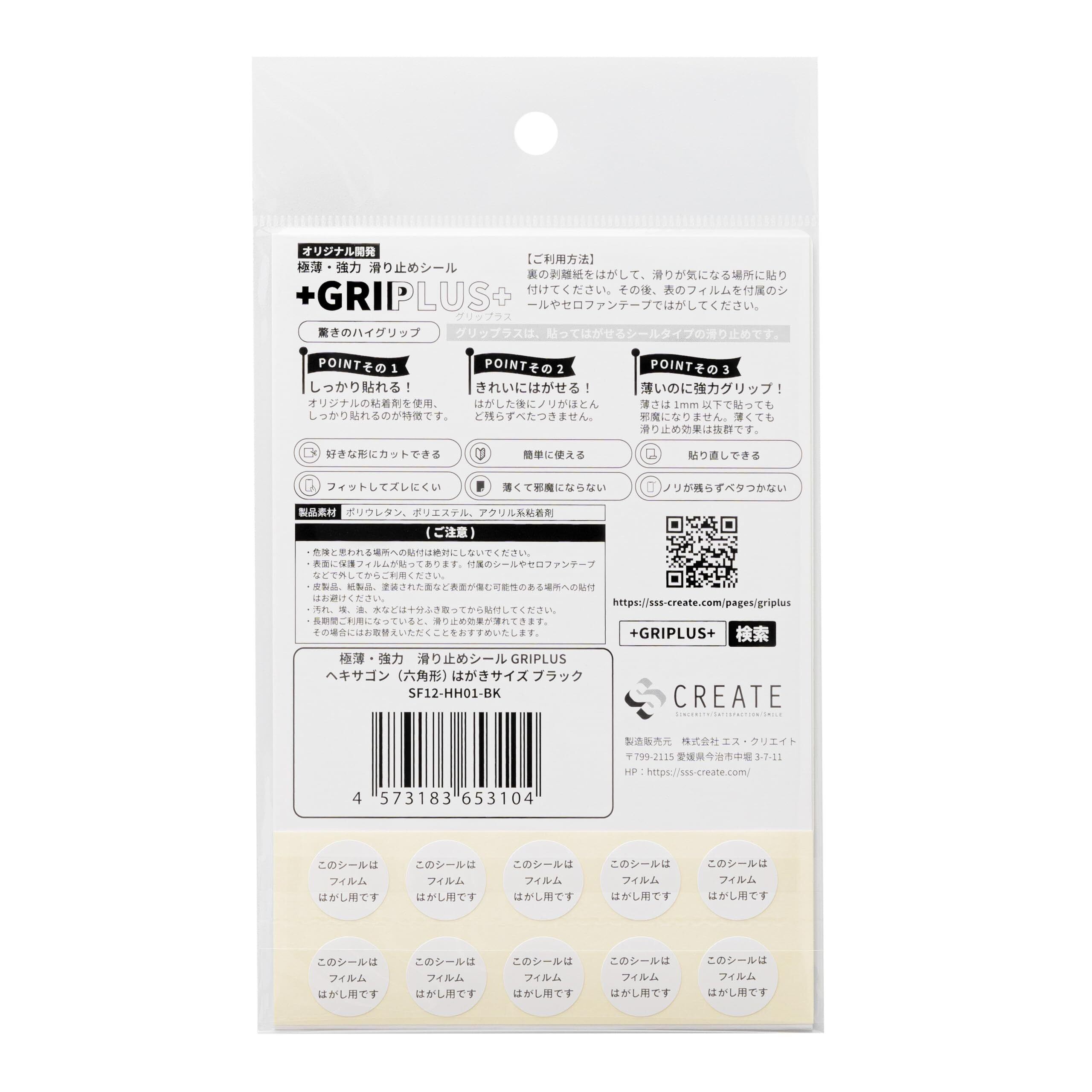 GRIPLUS(グリップラス) 極薄・強力 滑り止めシール GRIPLUS ヘキサゴン(六角形) はがきサイズ (1, ブラック)
