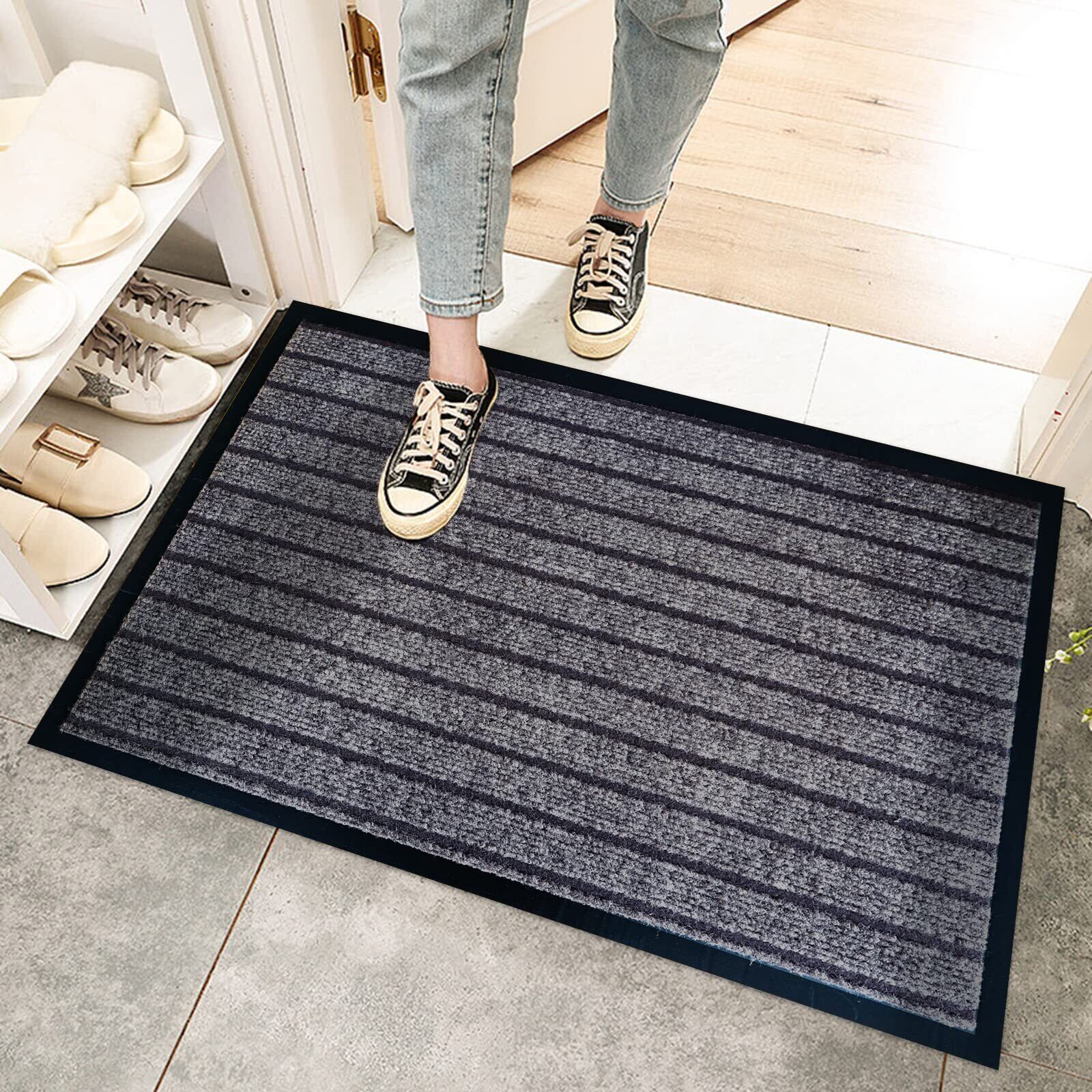 【耐磨性抜群&滑り止めマット】玄関マットは表面ポリプロピレン繊維な高品質材料で作られて、優れた強度と耐摩耗性を持っています。裏面にはしっかりと滑り止め加工が施されますので、マットのズレを防ぎます!子供とお年寄りがいるの家庭でも安心してお使いいただけます。