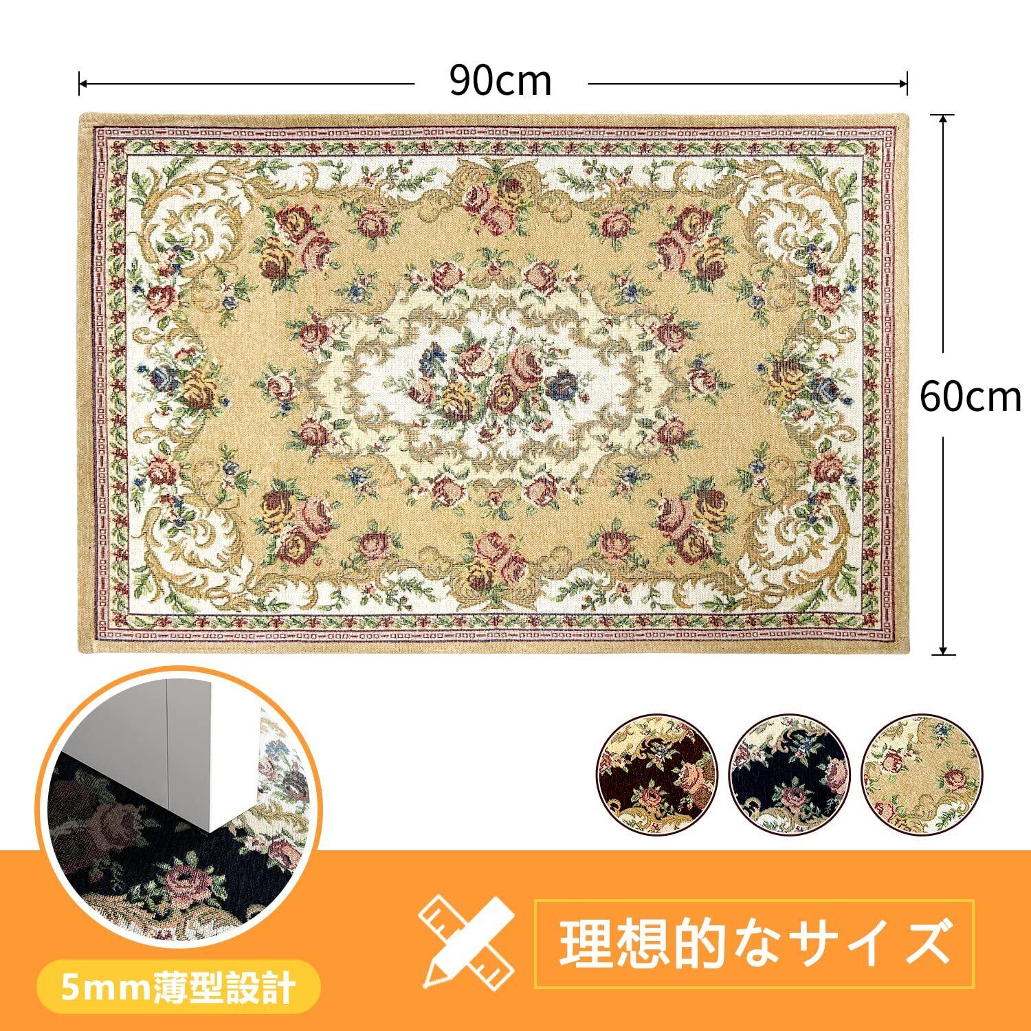 創優会 玄関マット 室内 おしゃれ 花柄 洗える 泥落とし ゴブラン織り 滑り止め 60×90 丸洗い 北欧 屋内 自宅 吸水速乾 抗菌防臭 耐磨耗性 床暖房対応 オールシーズン適用マット (ベージュ)