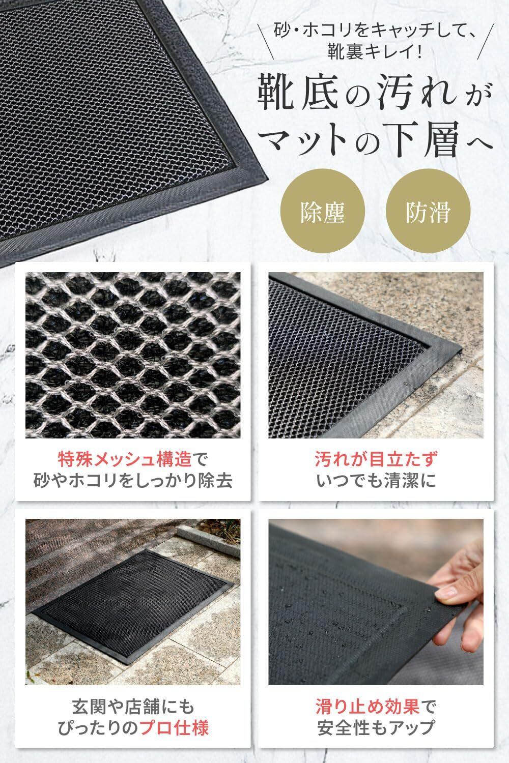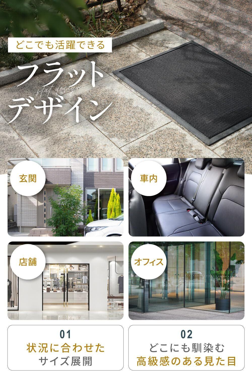 【滑り止め付きで雨天時も安心の安全設計】 裏面には全面に滑り止め加工が施されており、コンクリートやタイルなどの滑りやすい床面でもズレにくく安心。雨の日の玄関前でも安定して使用でき、ご家庭だけでなく、高齢者の出入りが多い介護施設や、濡れやすい店舗入り口にも最適な玄関マットです。