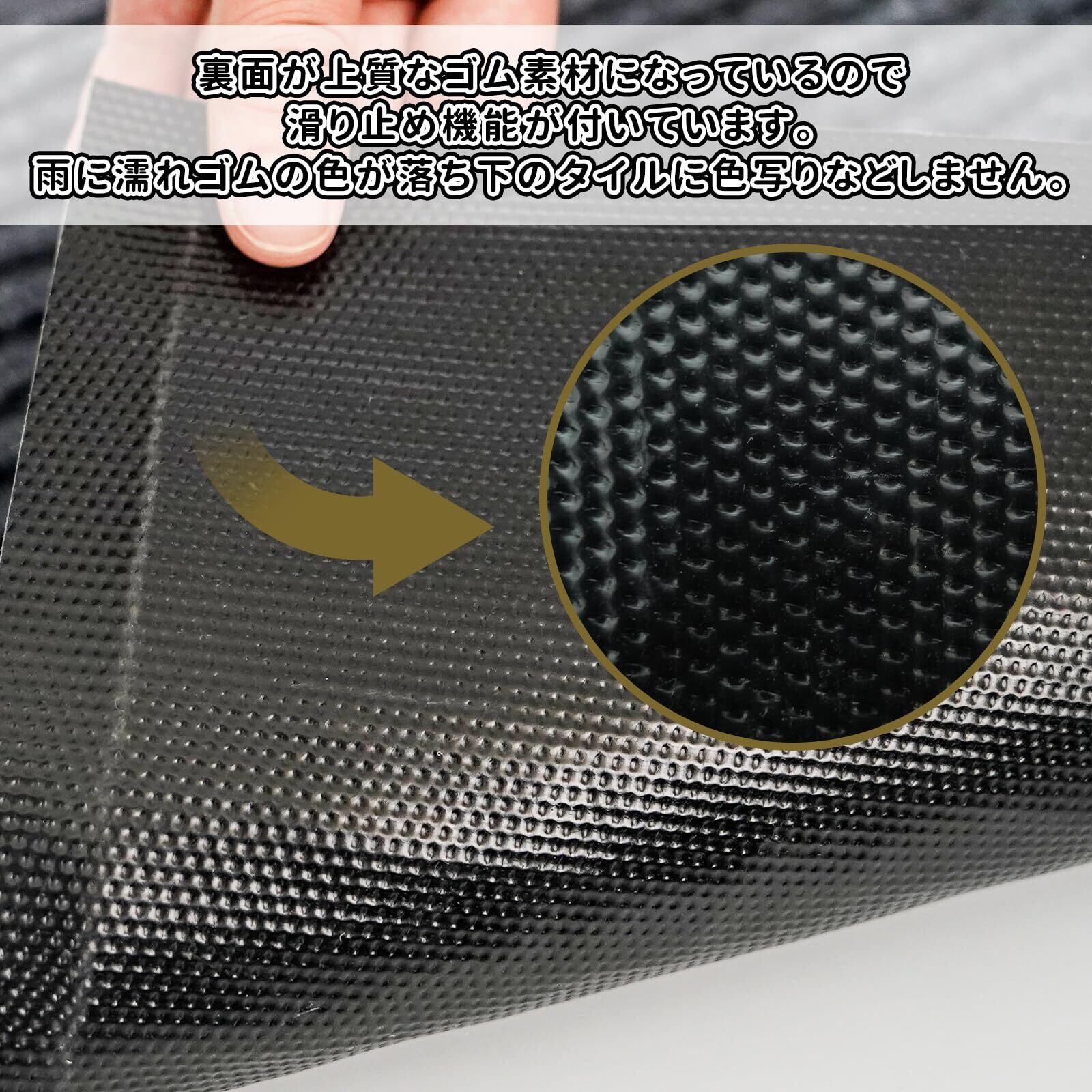 【製品仕様】サイズ:40×60cm;50×80cm;60cm×90cm;80×120cm;90×150cm;100×120cm;100×150cm。【表面素材】ポリプロピレン繊維(耐摩耗性&耐摩擦性に優れ、長時間踏んでも崩れません);【裏面素材】天然ゴム(滑り止め機能付き)。玄関マット自体に重さがあるので、屋外で強風が吹いてもずれにくいんです。