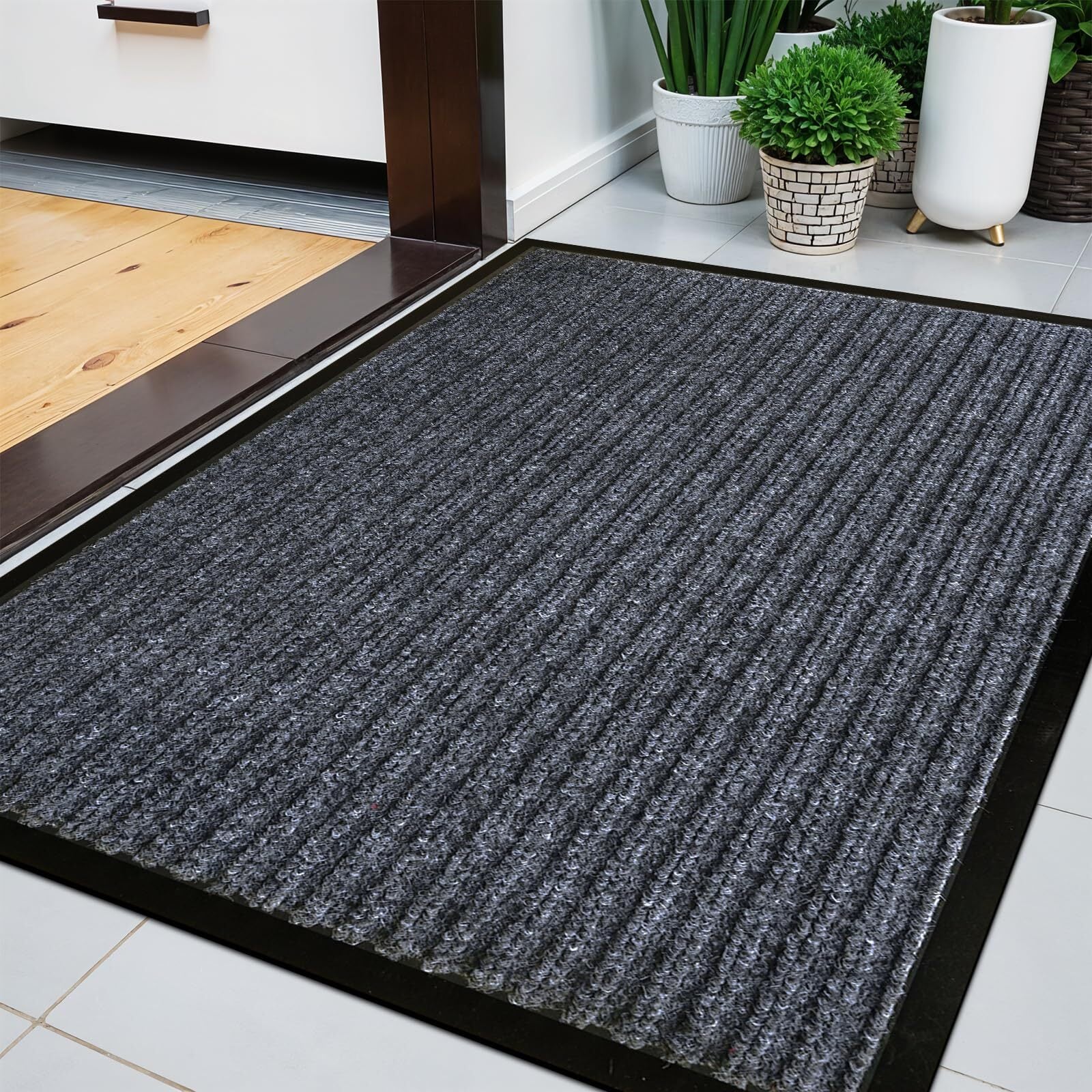 玄関マット 屋外 室内 泥落とし 滑り止め 業務用 家庭用 速乾 吸水 玄関マット屋外用 店舗用玄関マット 室内用玄関マット 大判 玄関外マット 耐磨耗性 入口マット ドアマット 事務所 オフィス お店 (グレー, 60cm×90cm) [並行輸入品]