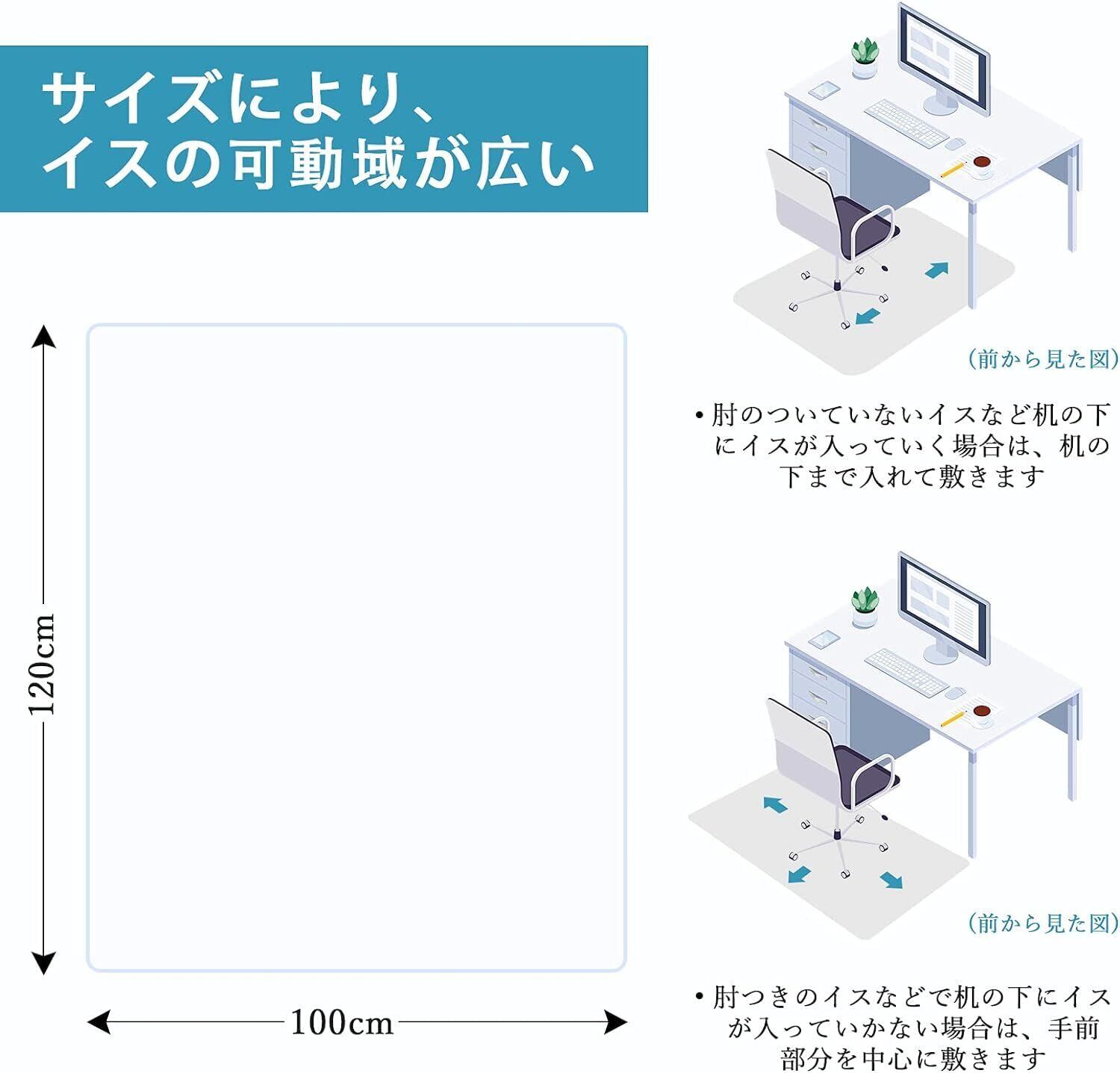 【自由カットOK】サイズ:幅100×奥行120×厚み0.15cm、必要に応じてハサミで好きな形にカットできます。pvcチェアマットはインテリアに馴染みやすくてフローリングや畳が溶ける半透明タイプなので、圧迫感がなくお部屋の雰囲気を損なうことなく、どんなお部屋やインテリアも違和感なくマッチします。チェアにはもちろん、キッチンや食卓、ペットのケージ周りなど幅広く使えます!ヒント: 記載されているサイズは規定値です。個体により若干の誤差((1-2cm))が発生致しますので、あらかじめご了承下さい。