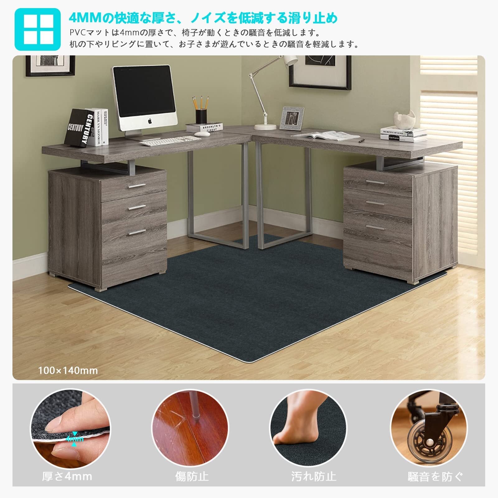 【ノイズリダクションデスクチェアマット】PVCフロアマットの厚みは4mmで、椅子移動時の騒音を低減し、椅子を自由に動かすことができ、騒音を低減します。ベランダ、居間、キッチン、廊下など、お子様が遊んだり、お年寄りが歩いたりするのに便利なチェアマットを設置できます。