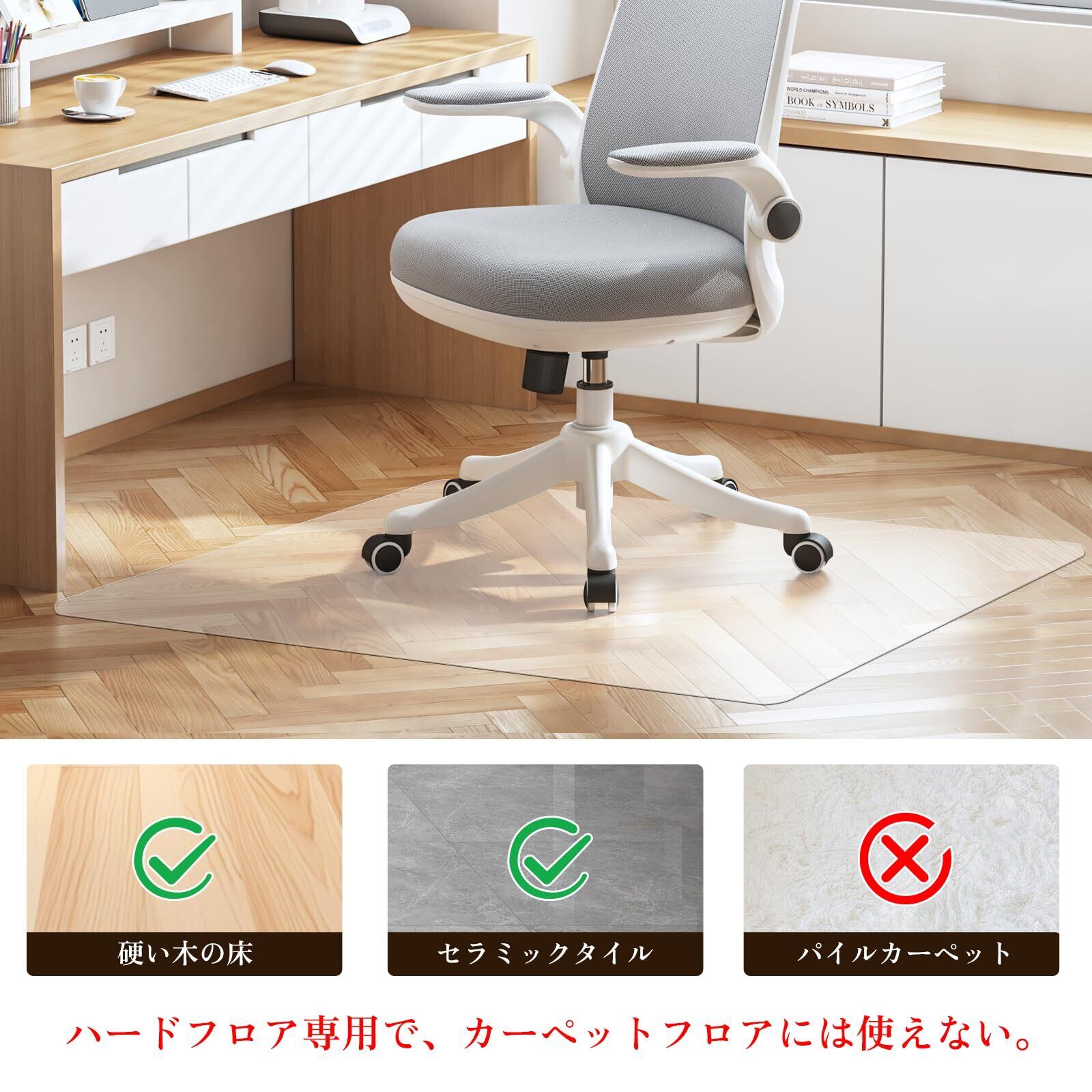 【安全な素材】国際認定されたSGS標準で安全性が高い材料PVCを採用しており、pvcチェアマットはインテリアに馴染みやすくてフローリングや畳が溶ける半透明タイプで、幅広い汎用性があります。