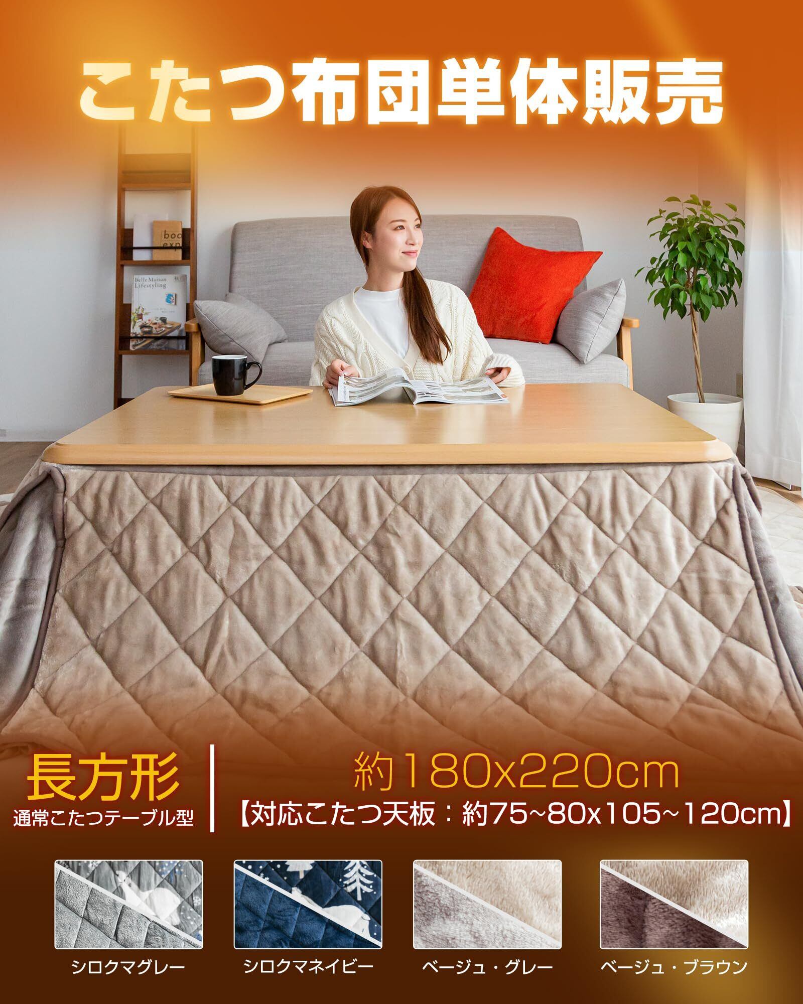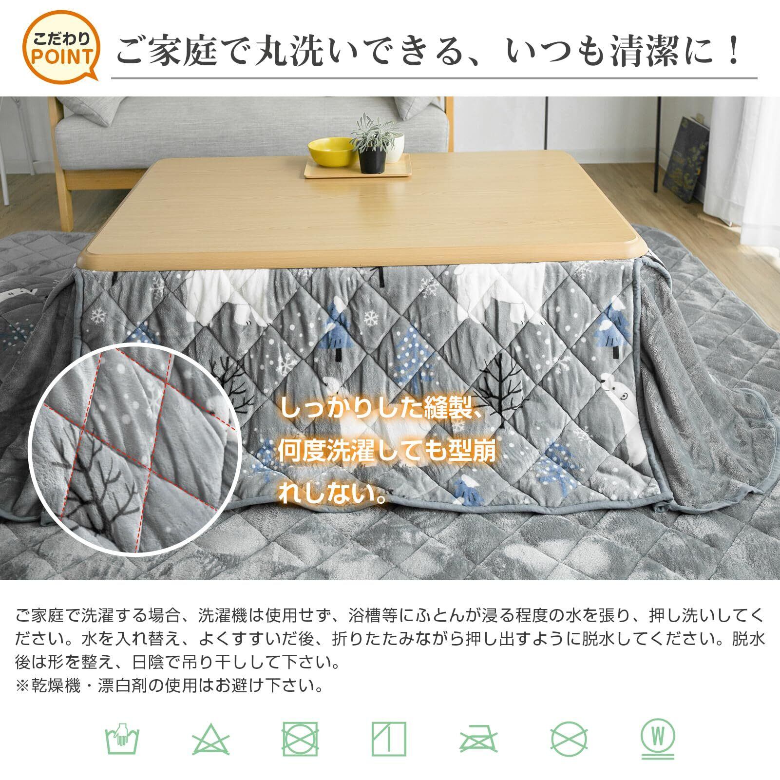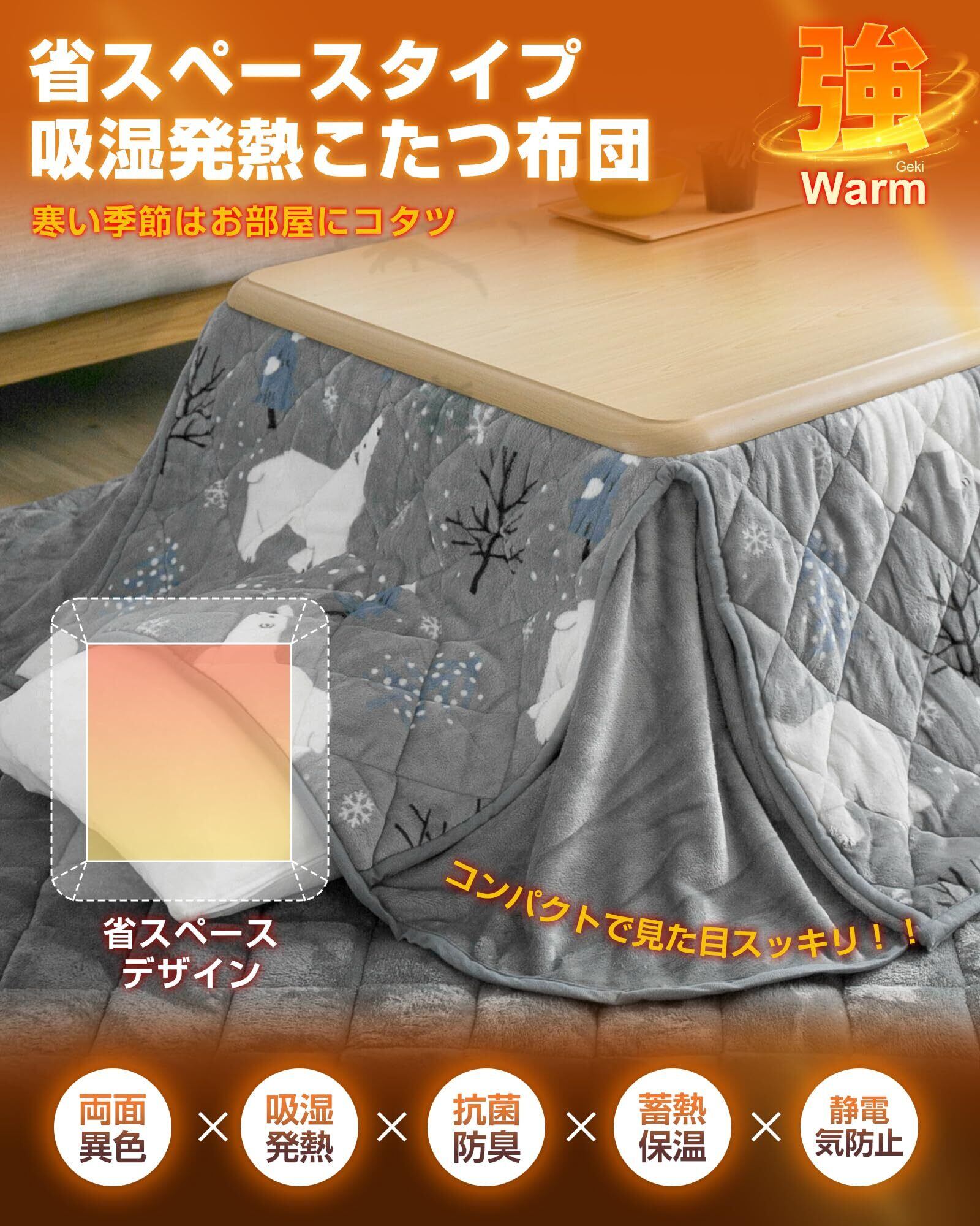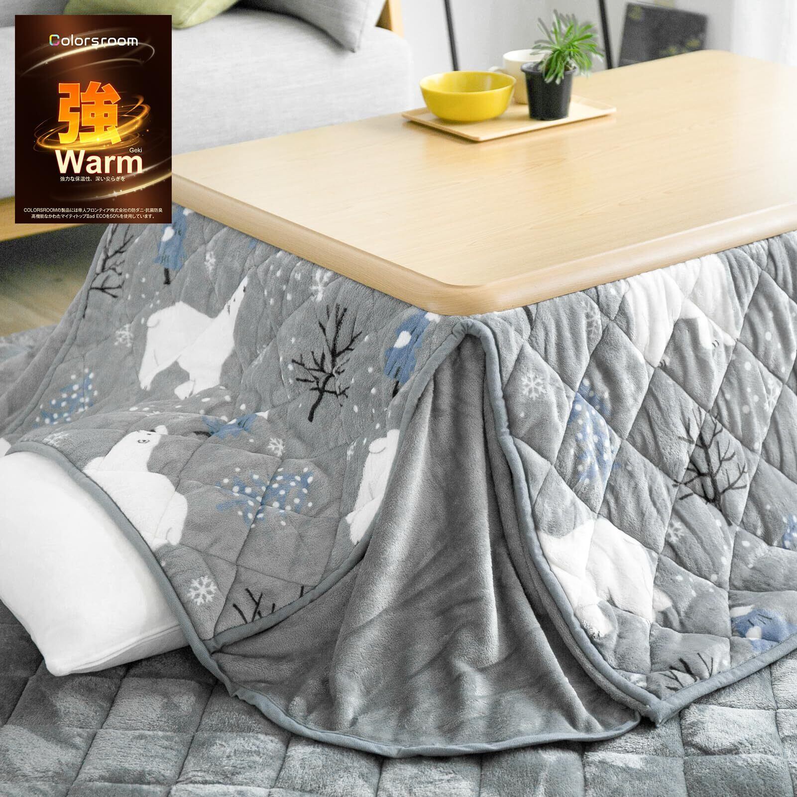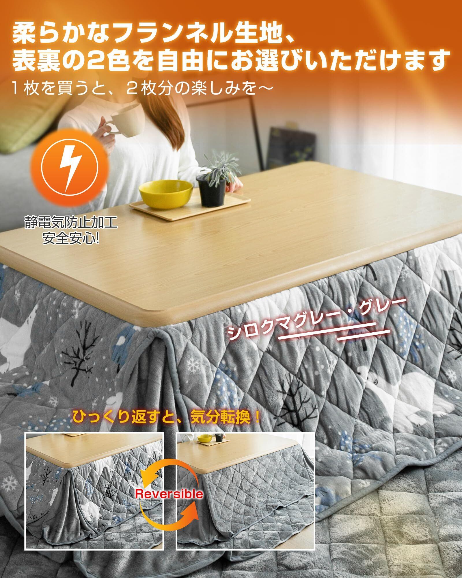 Colorsroom こたつ布団 長方形 省スペース コタツ布団 180×220cm 掛け単品 洗える 抗菌防臭 リバーシブル 吸湿発熱 暖かい コタツふとん 厚手 フランネル 冬用 シロクマグレー&グレー