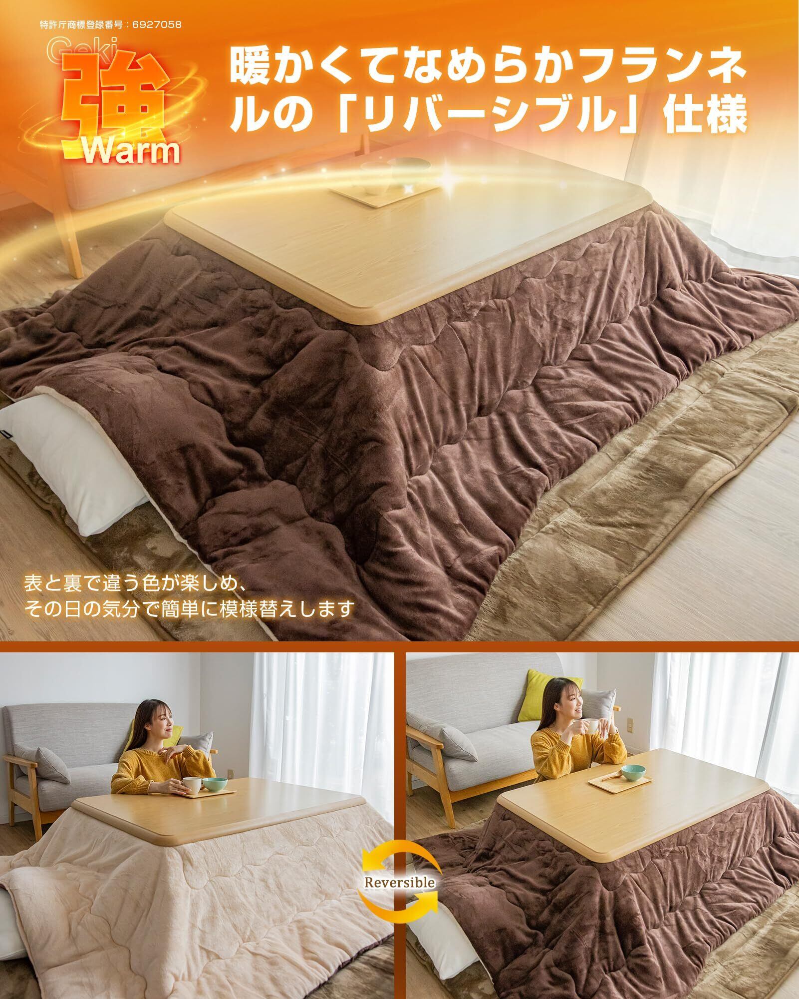 Colorsroom こたつ布団 長方形 185×235cm 中綿1.8kg コタツ布団 【五層構造×CR-21吸湿発熱綿】 こたつ掛け布団 抗菌防臭 リバーシブル 両面使える 厚手 丸洗いOK 静電気防止 撥水加工 おしゃれ 北欧 冬用 無地両面・ベージュ&ブラウン