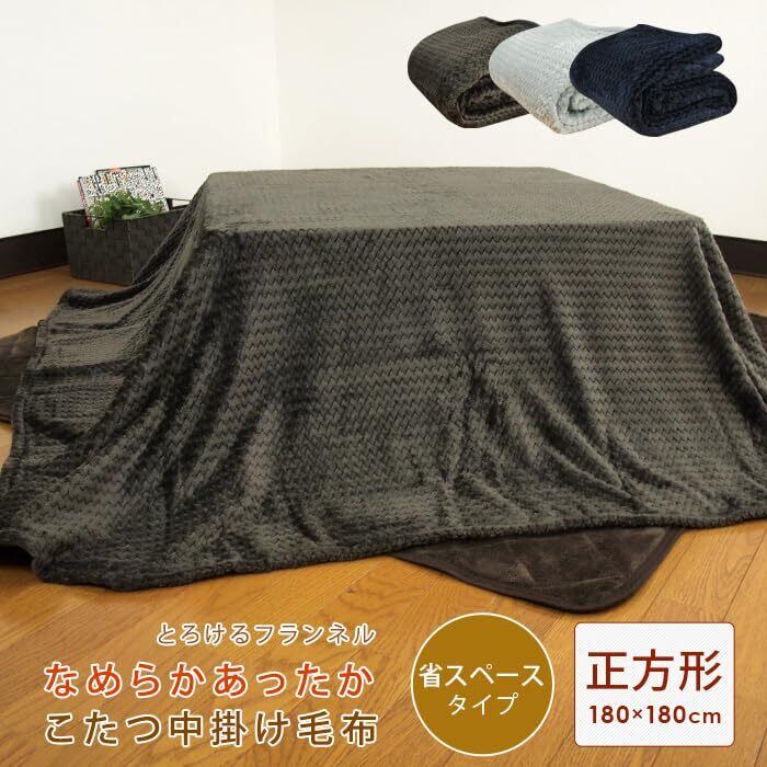 リヴェール こたつ毛布 こたつ中掛け毛布 正方形 省スペース あったか フランネル 暖かい 毛布 こたつ ブランケット こたつカバー マルチカバー ソファーカバー 上掛け (グレー, 180×180cm)