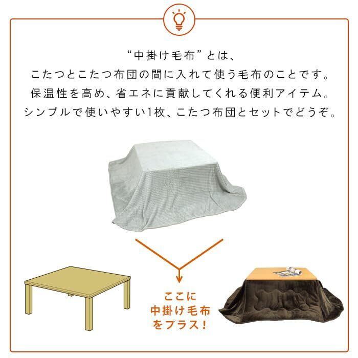中掛け毛布とはこたつとこたつ布団の間に入れて使う毛布のことです。ヒーターの暖かい空気を逃がさず、こたつの保温力を高めます。